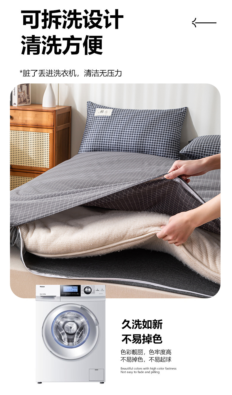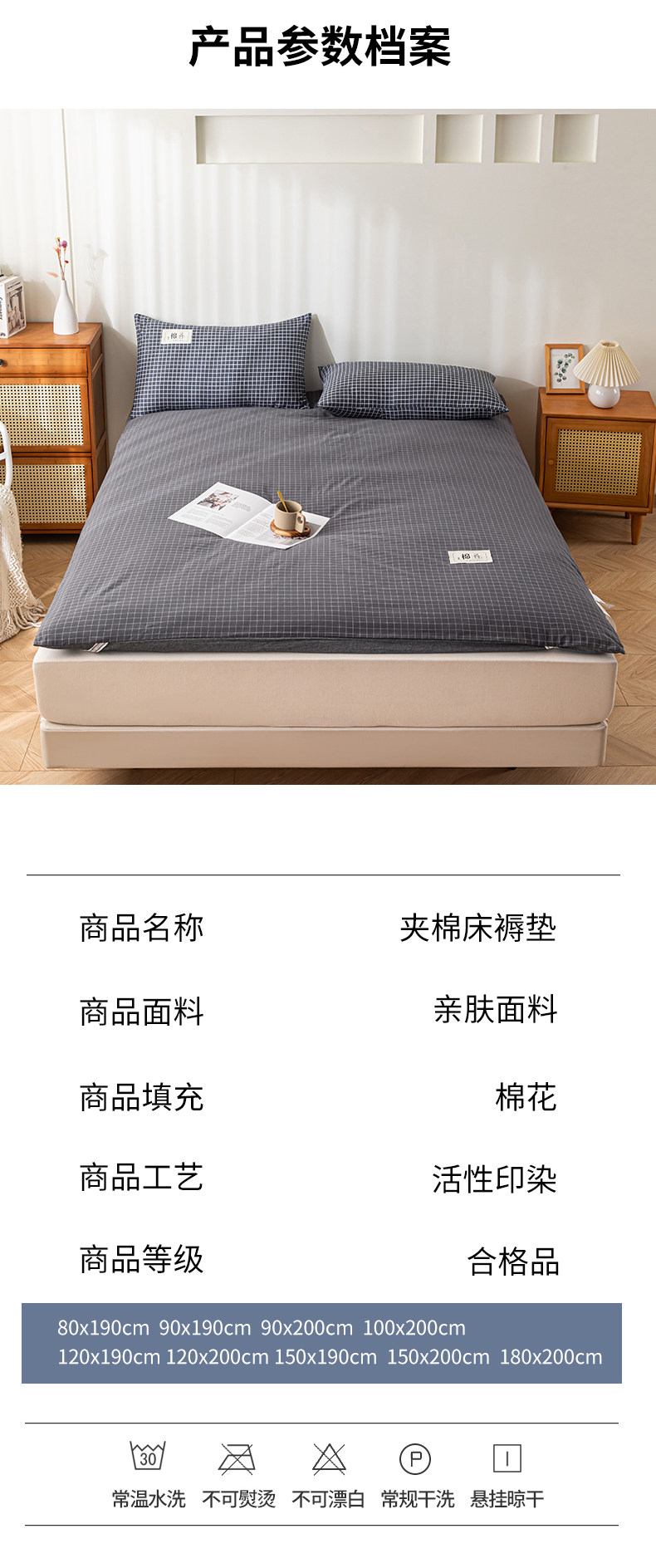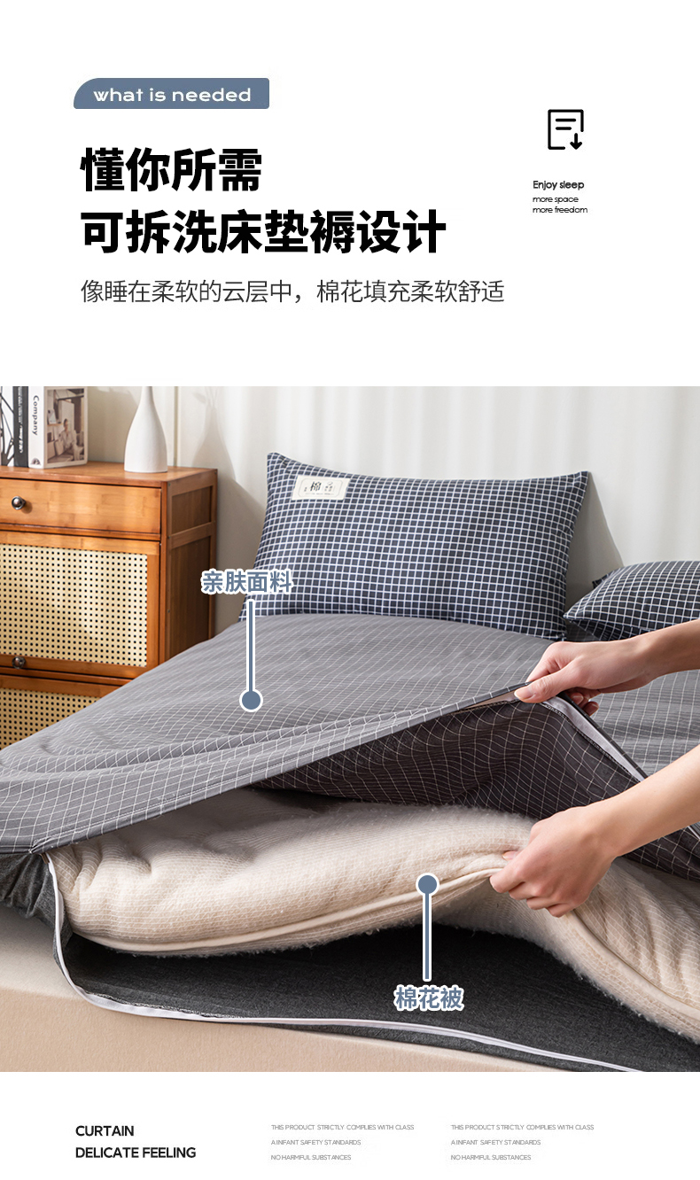 (总)悠米悠家 2025新款新疆棉花学生款可拆洗床垫,宾利兰格,高级灰格,格子控,灰色,极简绿格,简兮格,橘色小格,蓝小格,墨绿小格