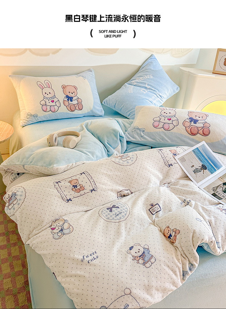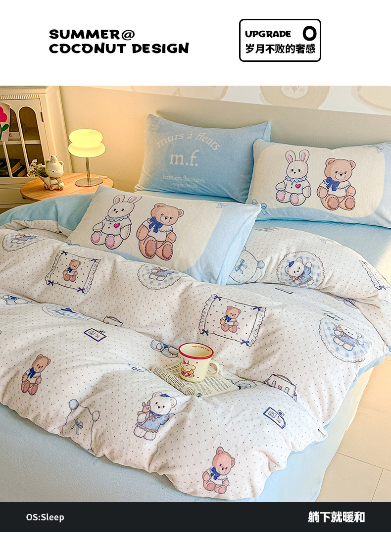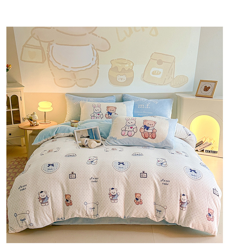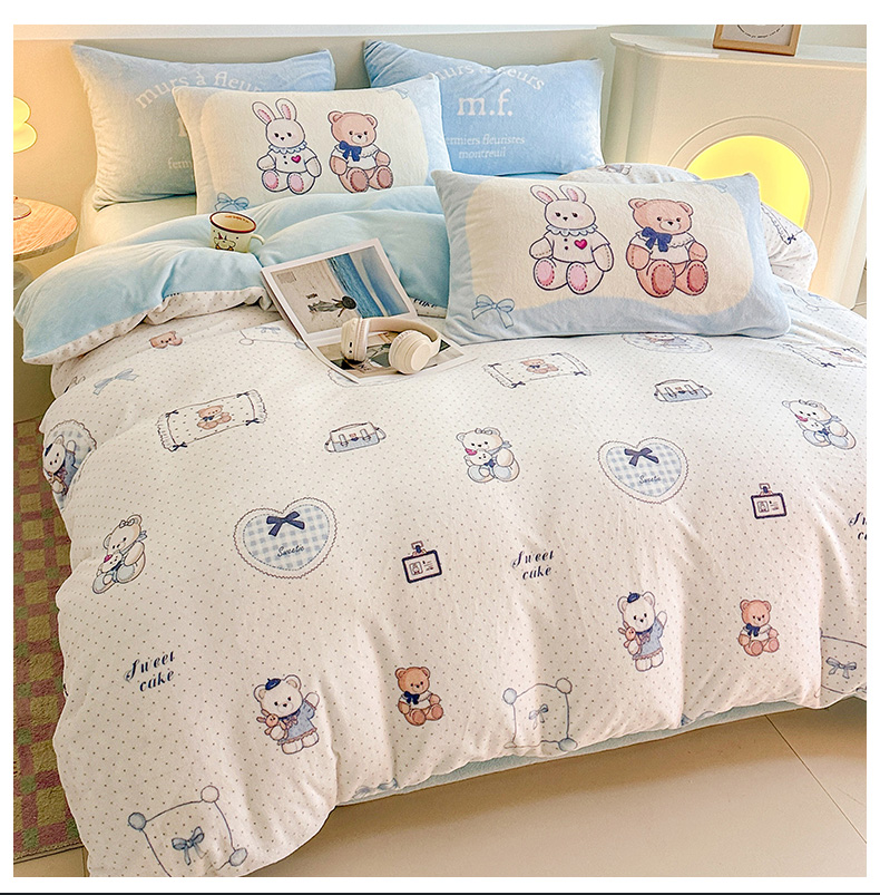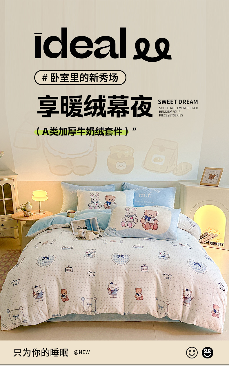 当前位置: 91家纺网 > 商品网购 > 床品套件 > 四件套 > 牛奶绒四件套 > 安哆啦家纺 2025新款A类加厚200克牛奶绒印花卡通四件套 贝果宝贝