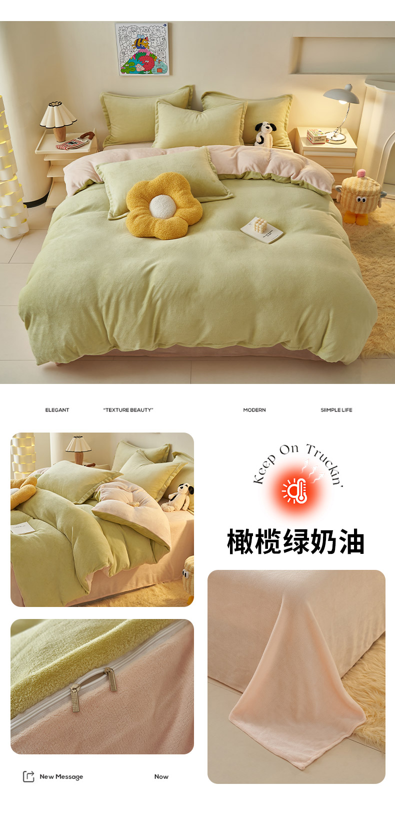 当前位置: 91家纺网 > 商品网购 > 床品套件 > 四件套 > 牛奶绒四件套 > 2025新款多巴胺小红书纯色牛奶绒四件套牛奶绒被套跨境定制-风格二 橄榄绿奶油