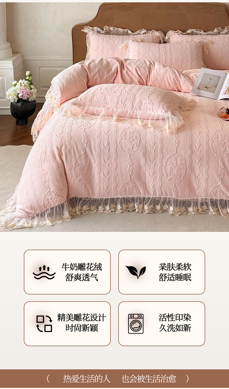 当前位置: 91家纺网 > 商品网购 > 床品套件 > 四件套 > 牛奶绒四件套 > 爱家(原缔乐家纺) 2025新款A类牛奶雕花绒四件套 铃兰花系列 铃兰花-梦幻紫