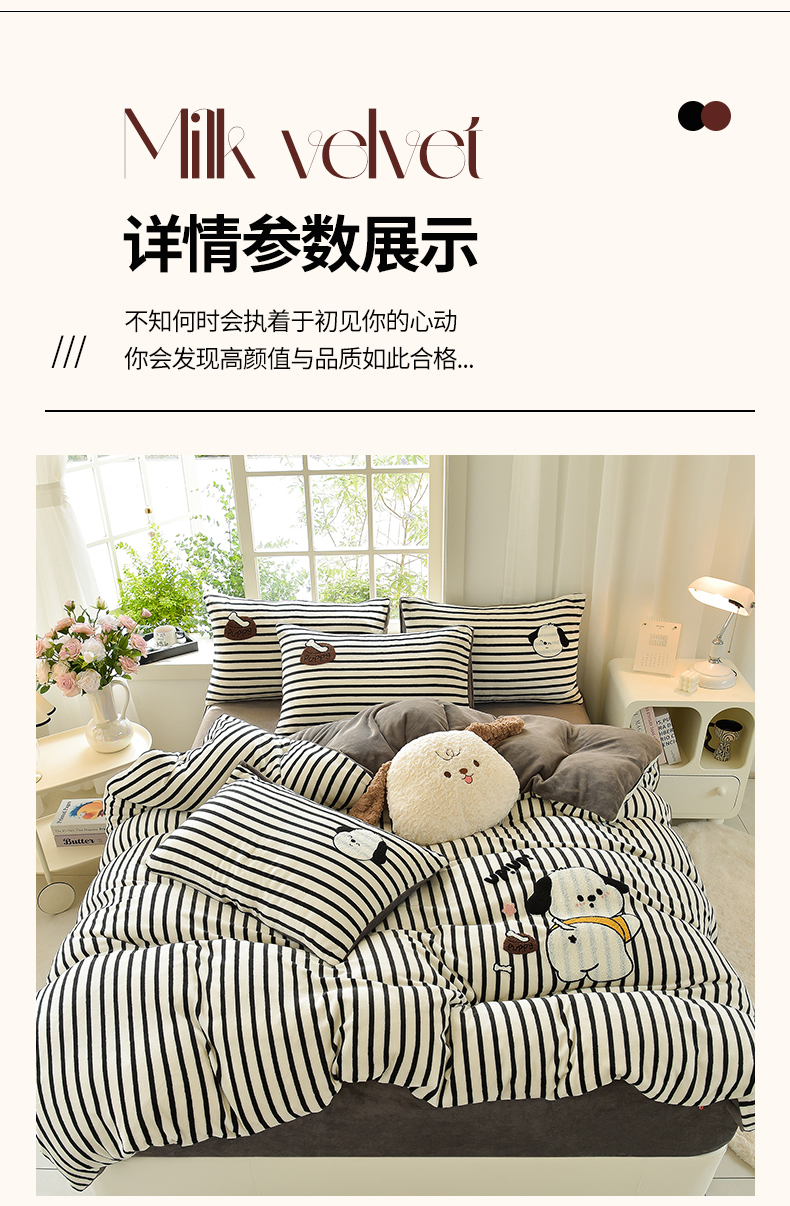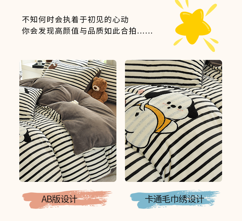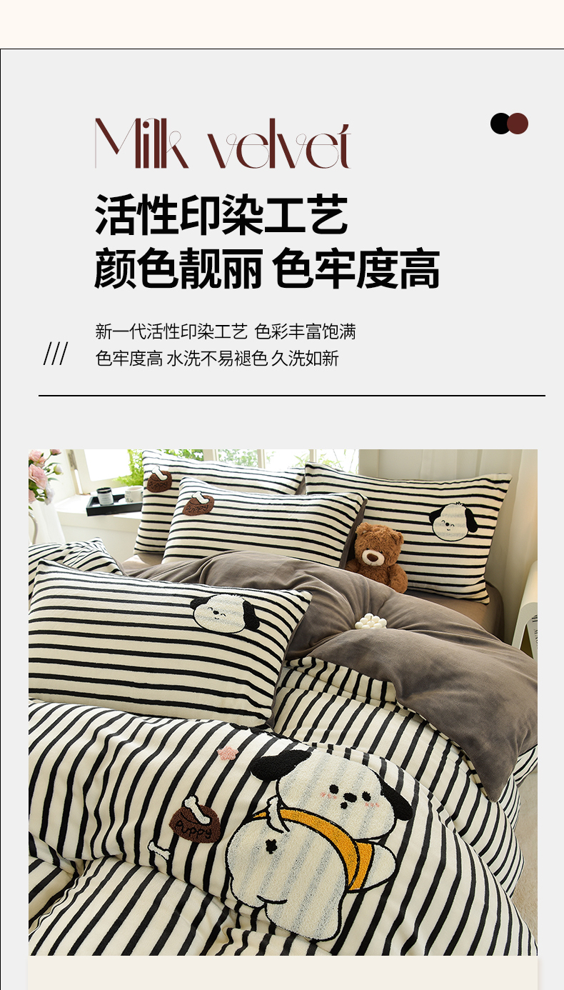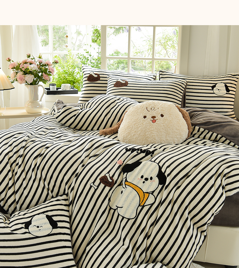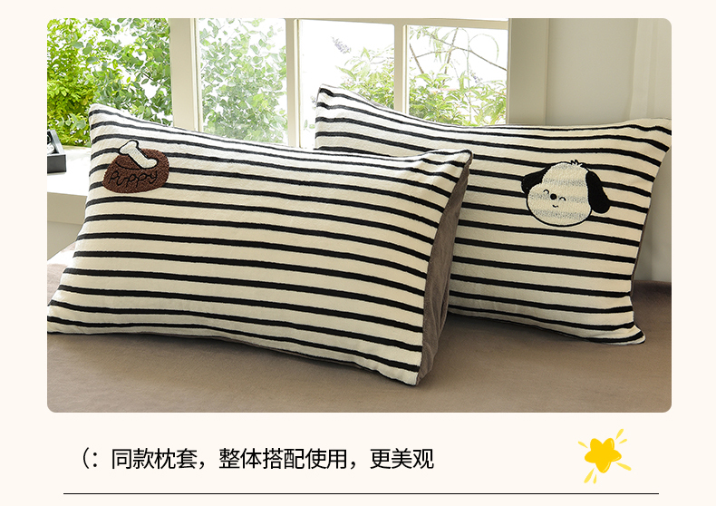 当前位置: 91家纺网 > 商品网购 > 床品套件 > 四件套 > 牛奶绒四件套 > 炫拼家纺 2025新款条纹印花卡通毛巾绣加厚牛奶绒四件套 条纹-恰恰狗-绅士灰