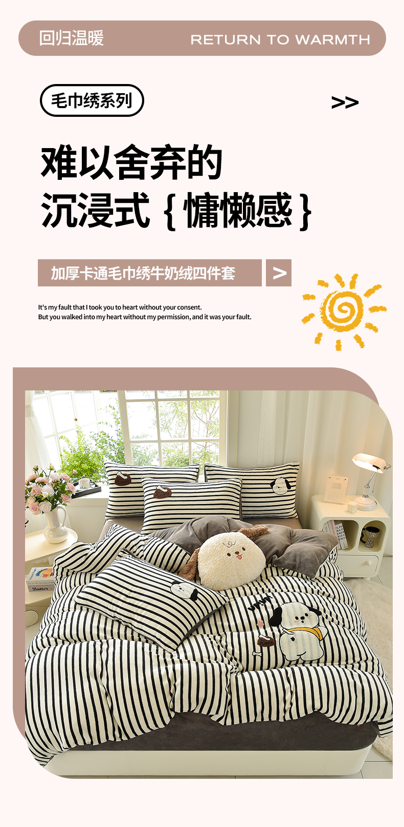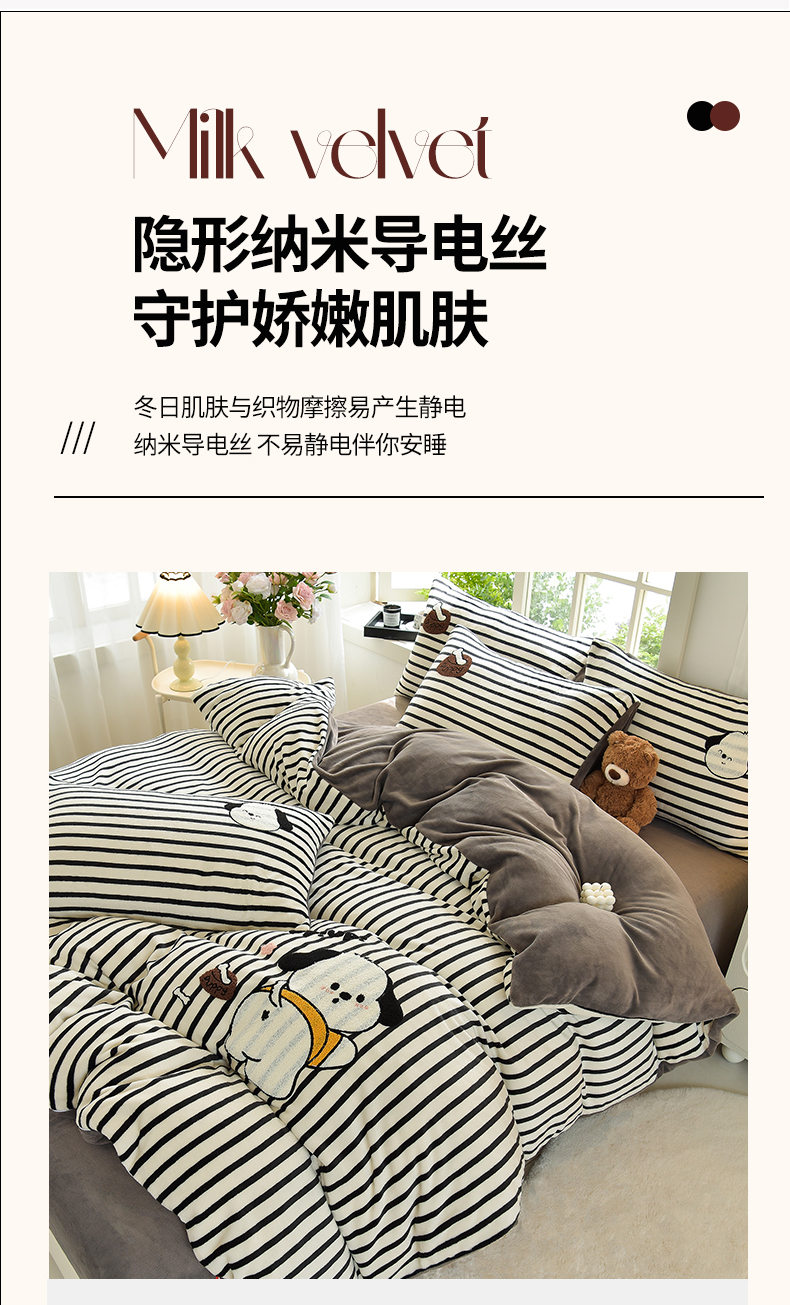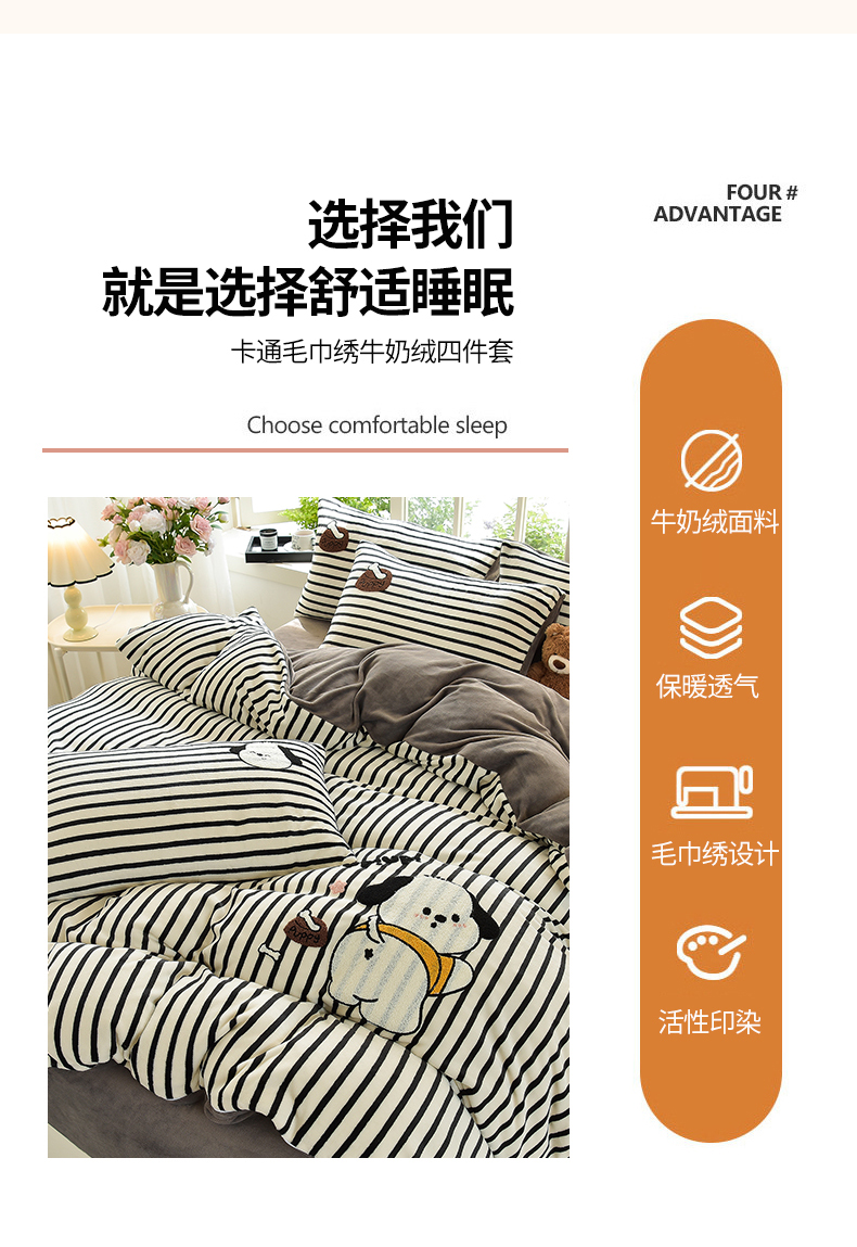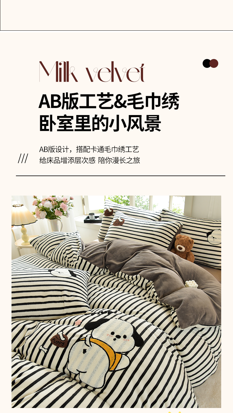 当前位置: 91家纺网 > 商品网购 > 床品套件 > 四件套 > 牛奶绒四件套 > 炫拼家纺 2025新款条纹印花卡通毛巾绣加厚牛奶绒四件套 条纹-恰恰狗-绅士灰