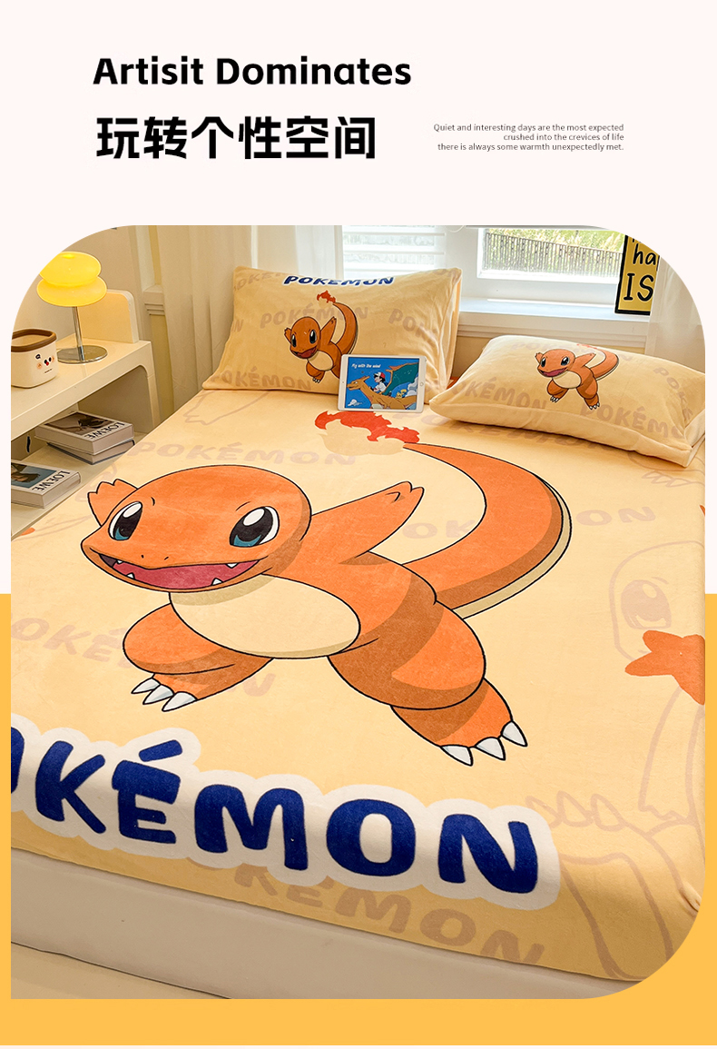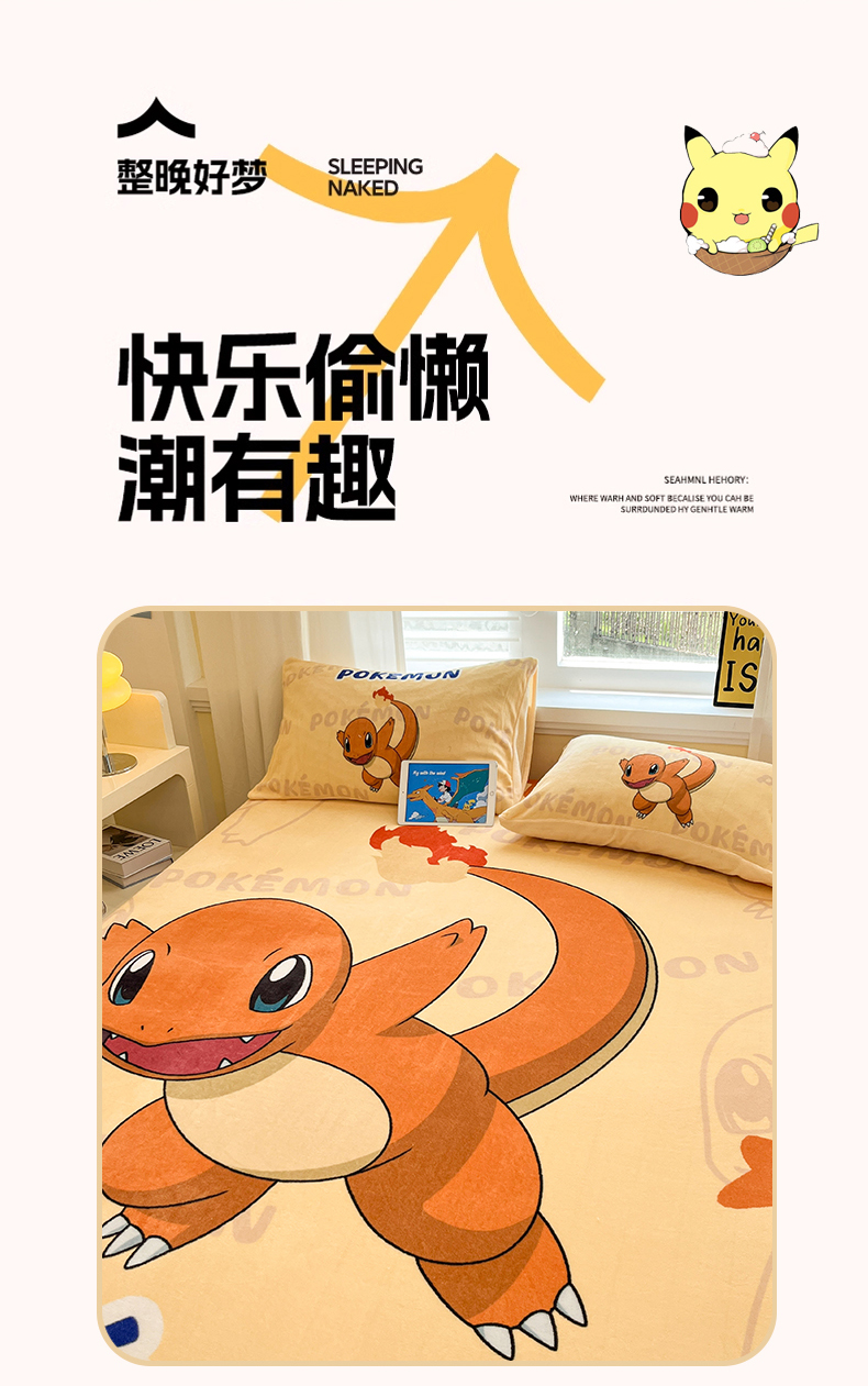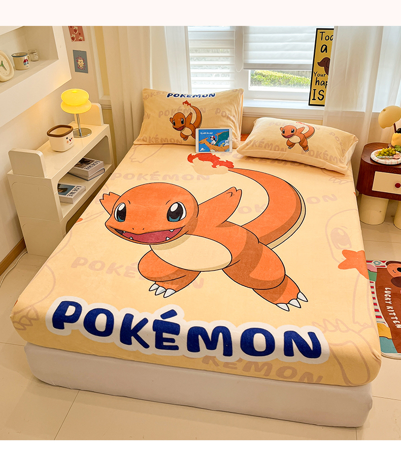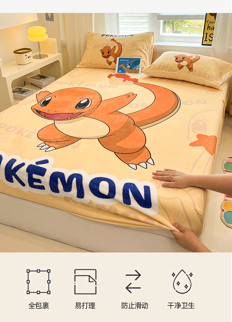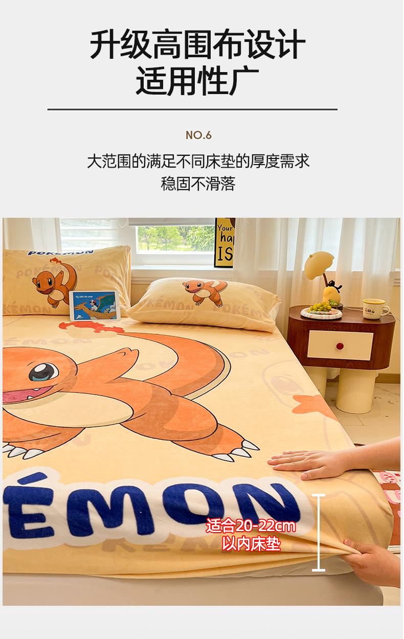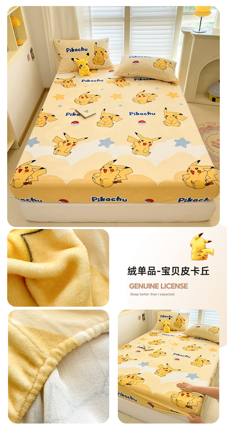 金爱家 2025新款牛奶绒保暖床笠床笠单件单床笠 绒单品-喷火龙