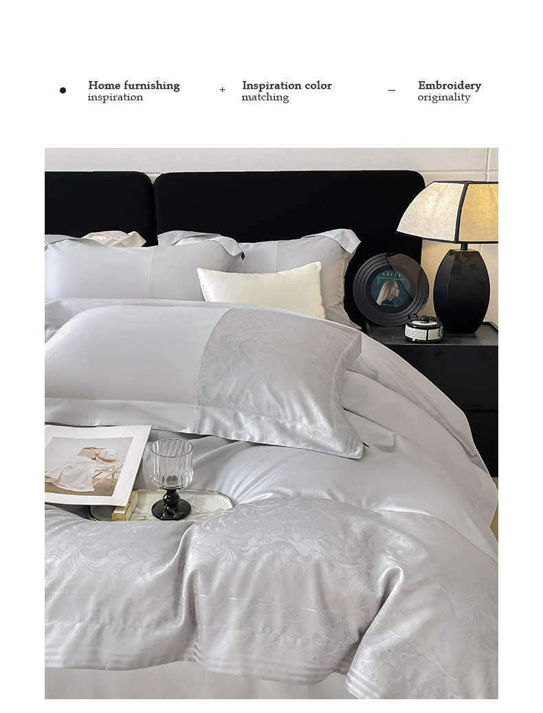 商品名称:2025新款高端A类贡缎提花长绒棉四件套纯棉全棉拼接被套纯色被套爆款床上用品-南翎 南翎-夜灰