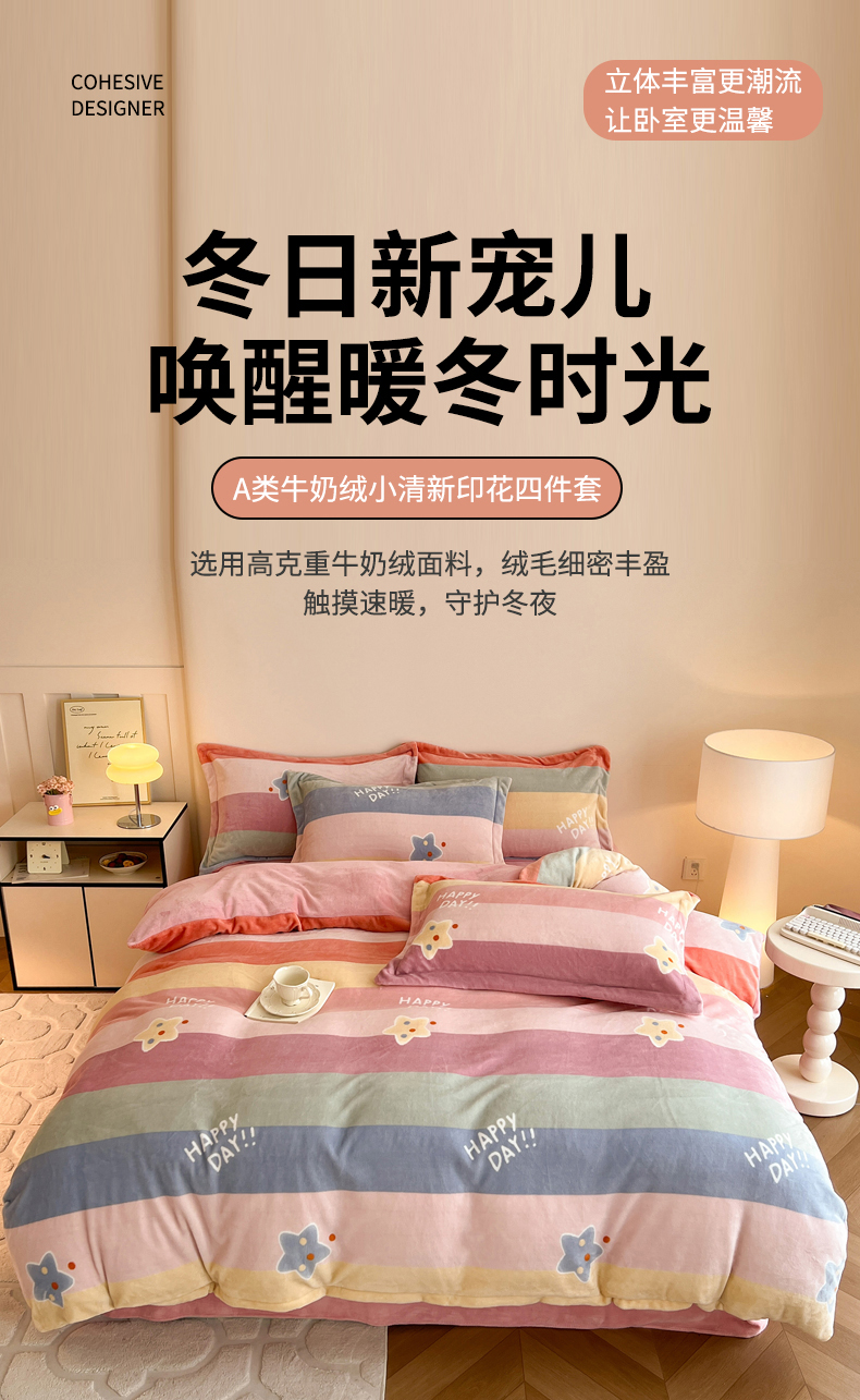 当前位置: 91家纺网 > 商品网购 > 床品套件 > 四件套 > 牛奶绒四件套 > 富馨莱 2025新款牛奶绒印花四件套240克面料支持一件定制尺寸 彩虹星星