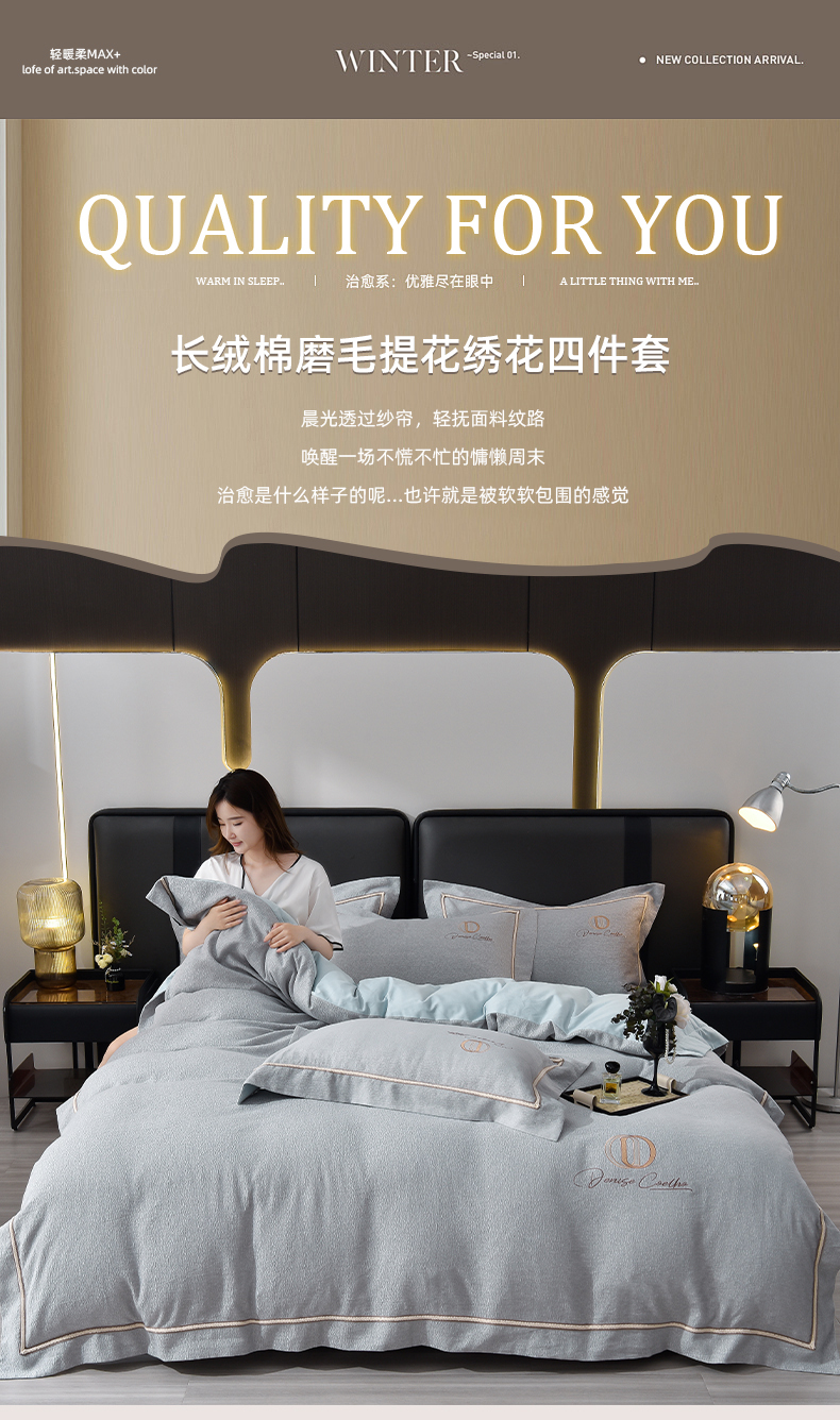 当前位置: 91家纺网 > 商品网购 > 床品套件 > 四件套 > 长绒棉四件套 > 瑞驰家纺 2025新款长绒棉纯棉色织提花绣花磨毛四件套-克里斯汀 克里斯汀-宁静蓝