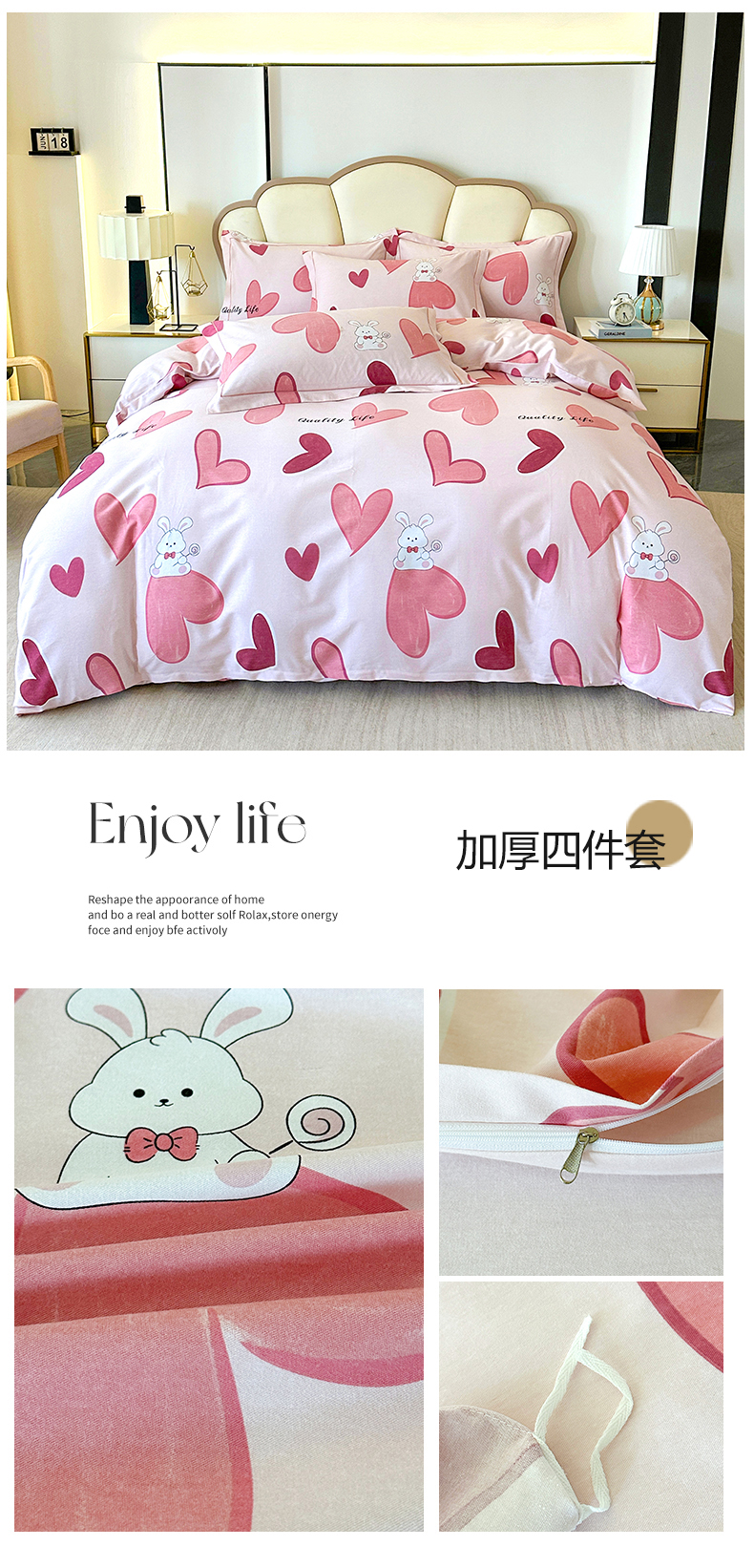 商品名称:橘姿 2025新款100%加厚全棉四件套纯棉四件套磨毛四件套礼盒装(控价不低于170) 铃兰兔粉