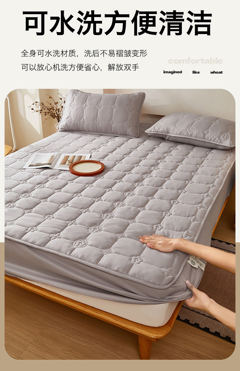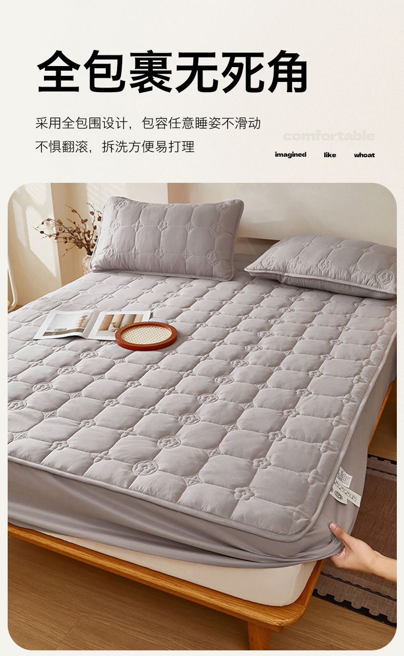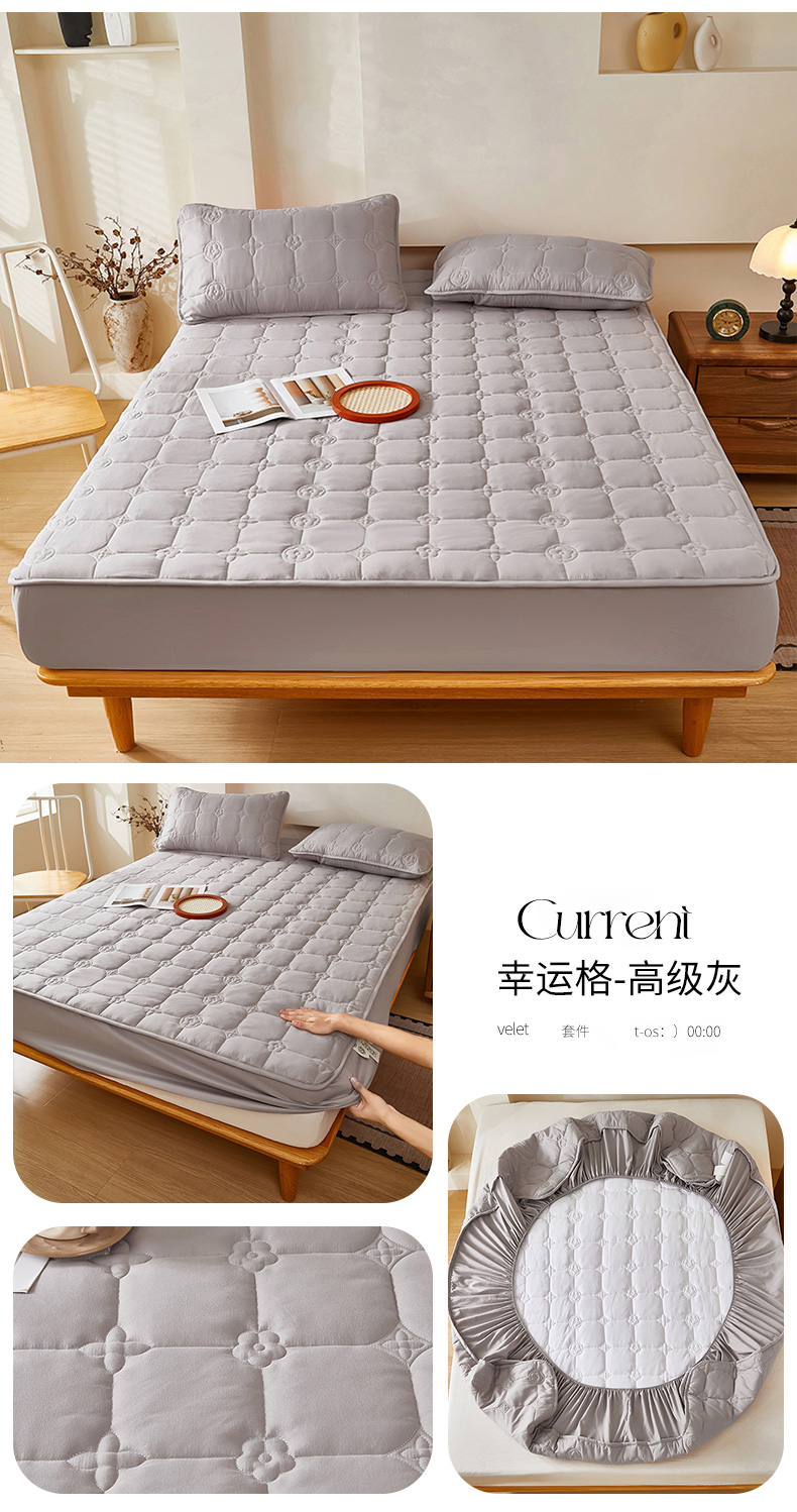 瑞兴纺 2025年新款亲肤夹棉床笠床裙 床笠款:幸运格-高级灰