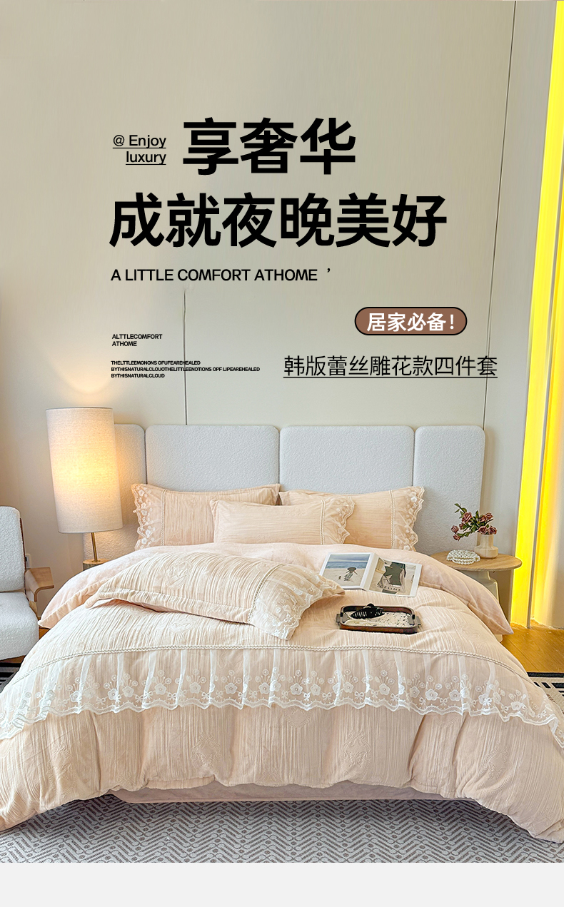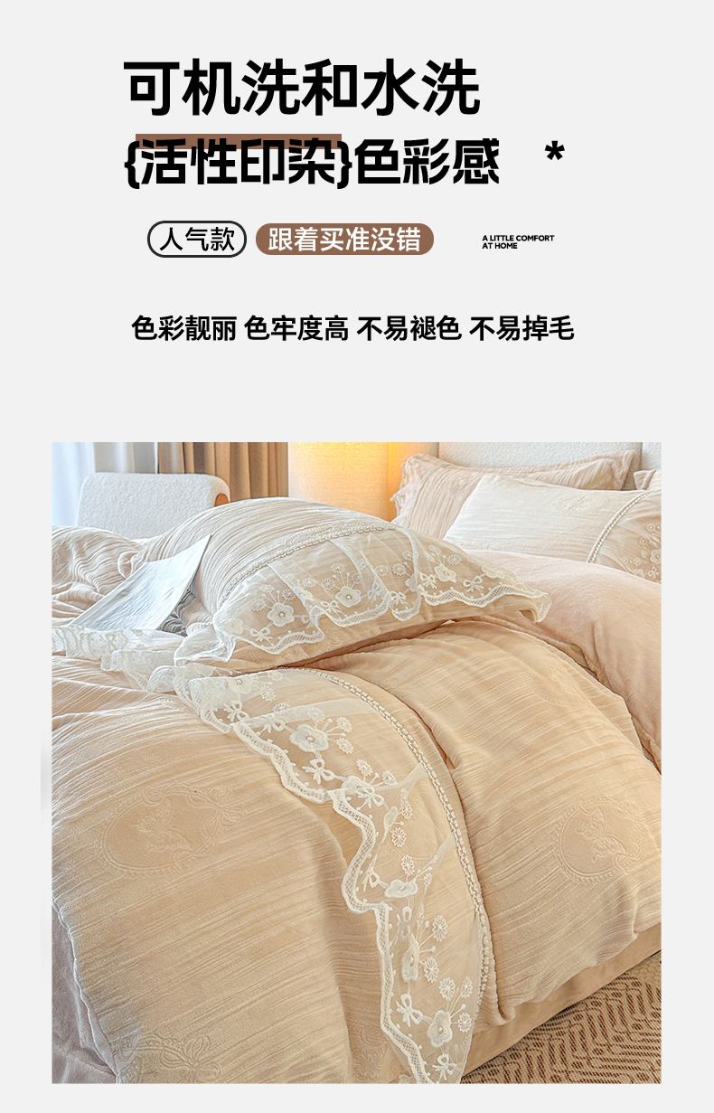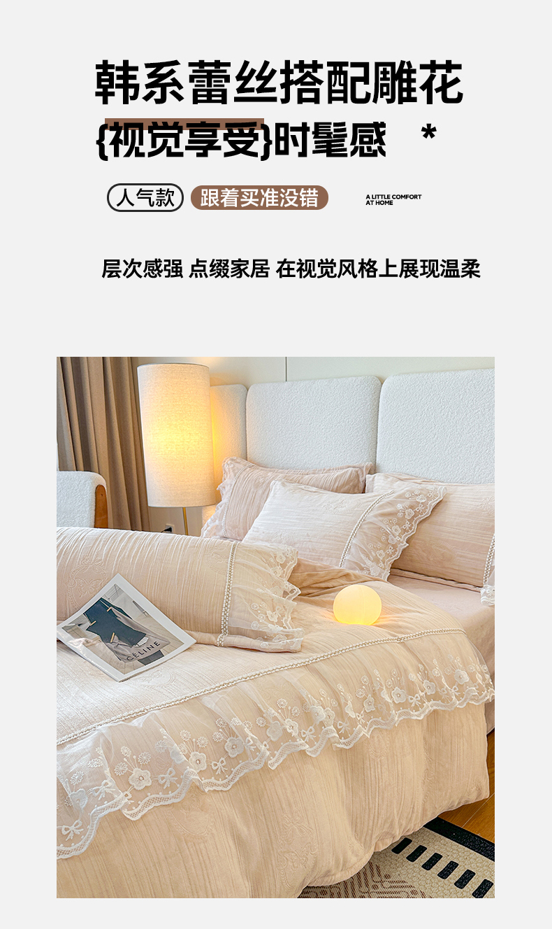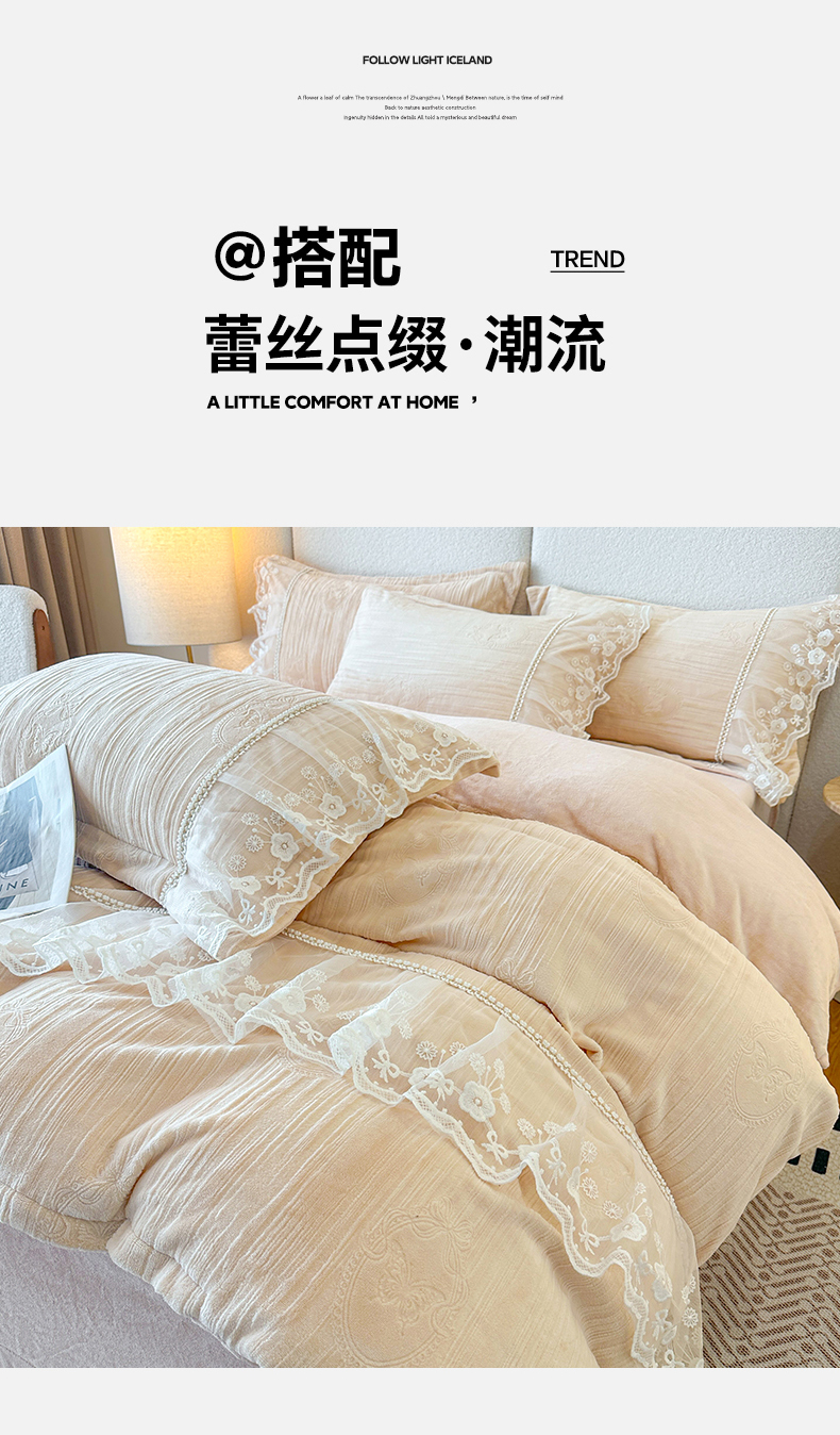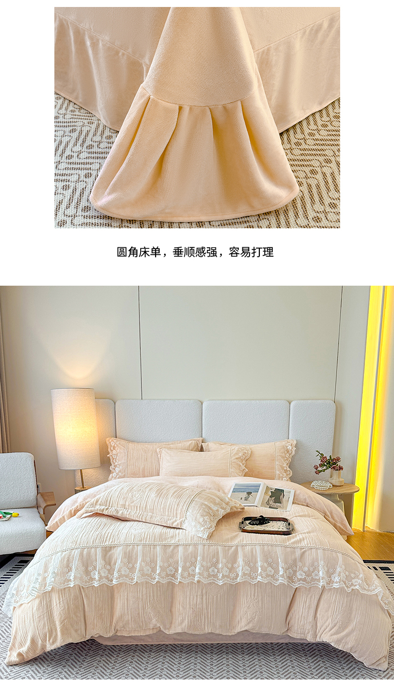 (总)诺梵家纺 2025新款花边款雕花牛奶绒四件套,芊黛-粉,芊黛-紫,芊黛-黄,幸福花-绿,芊黛-绿,幸福花-黄,芊黛-米白,幸福花-米白,幸福花-紫
