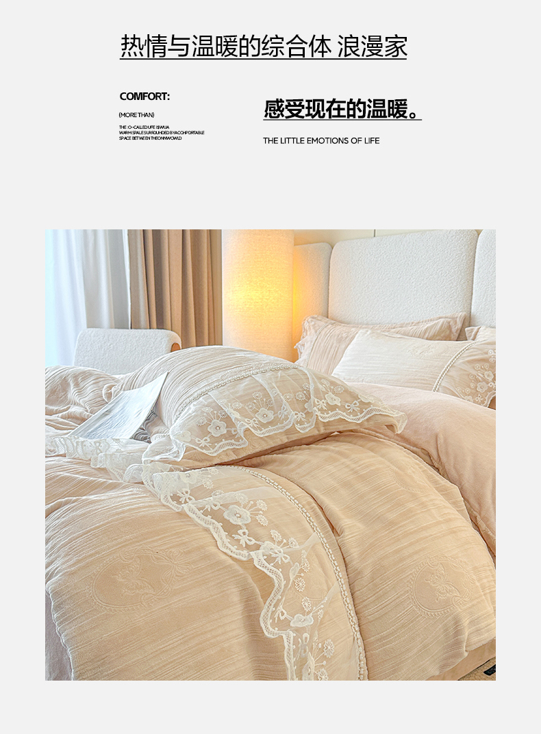 商品名称:诺梵家纺 2025新款韩版蕾丝雕花款四件套-米兰达 米兰达-玉色