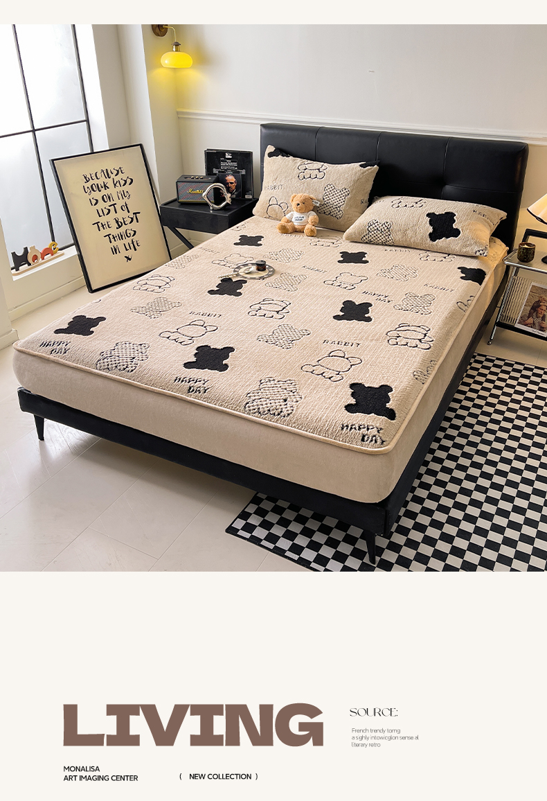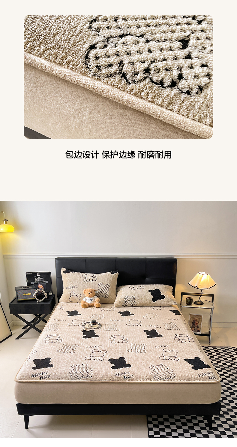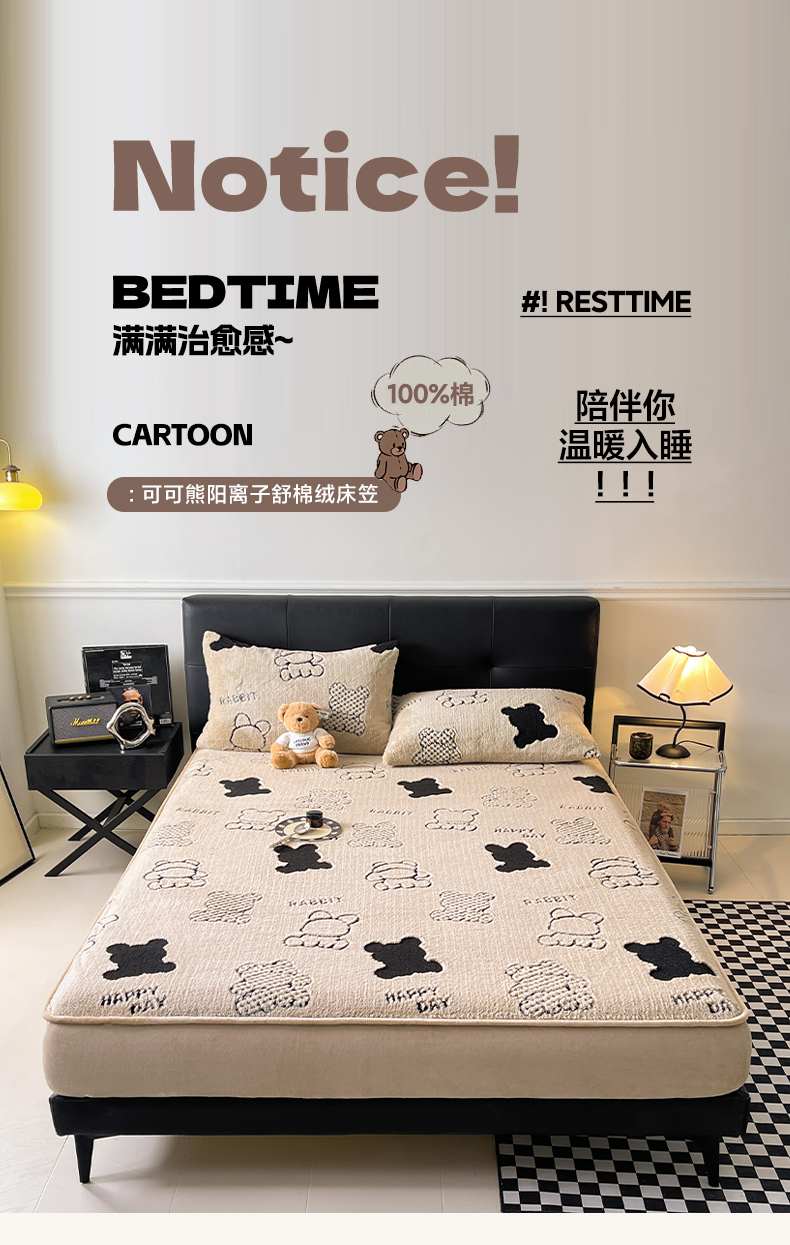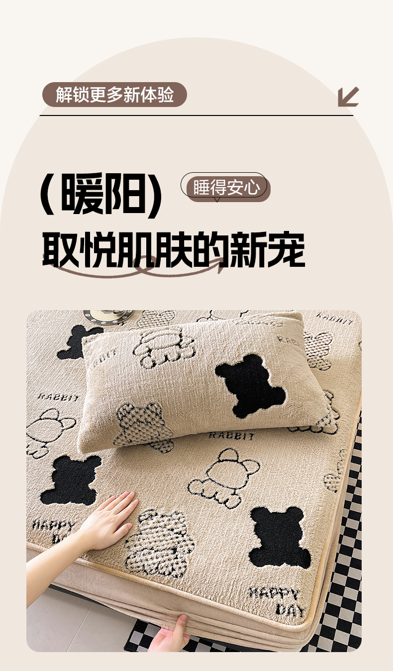 欧邦 2025新款阳离子舒棉绒牛奶绒床笠单床笠床笠单件-可可熊 可可熊-浅粉