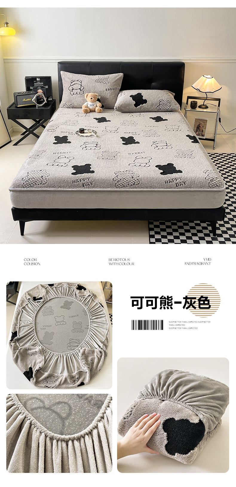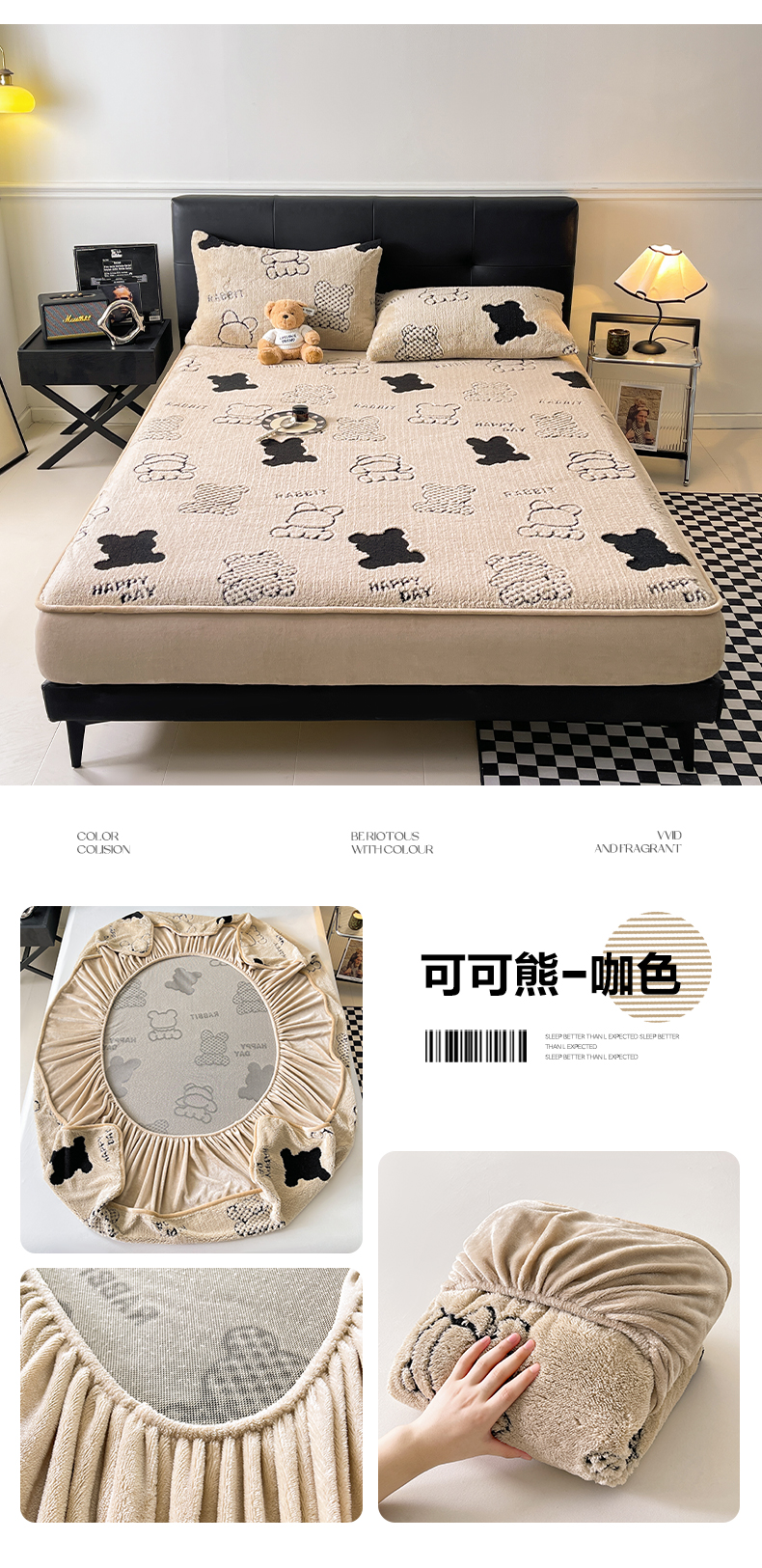 商品名称:欧邦 2025新款阳离子舒棉绒牛奶绒床笠单床笠床笠单件-可可熊 可可熊-浅粉