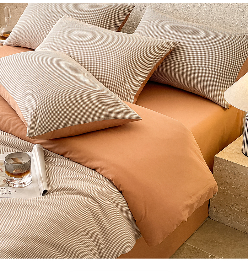 曲之慕 2025新款简约纯色全棉纯棉色织水洗棉四件套 维希格调-咖
