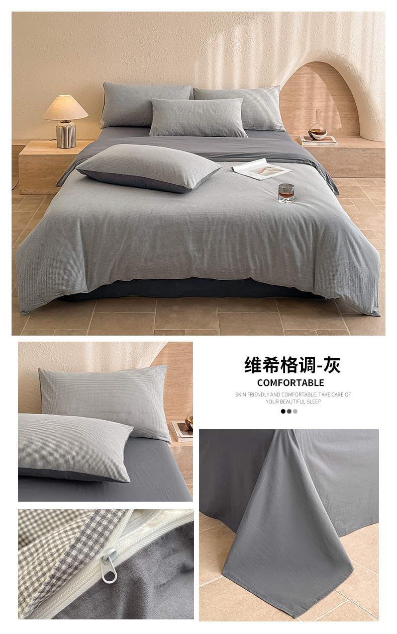 商品名称:曲之慕 2025新款简约纯色全棉纯棉色织水洗棉四件套 维希格调-咖