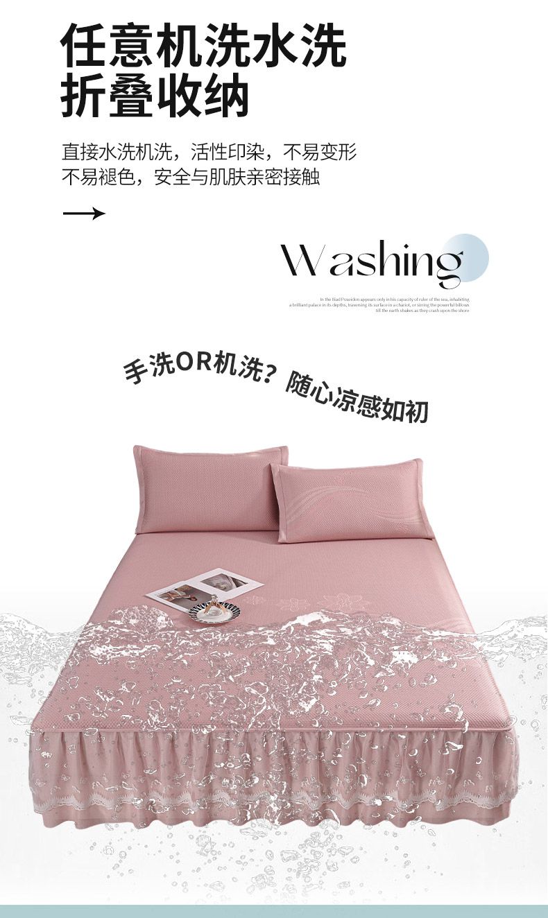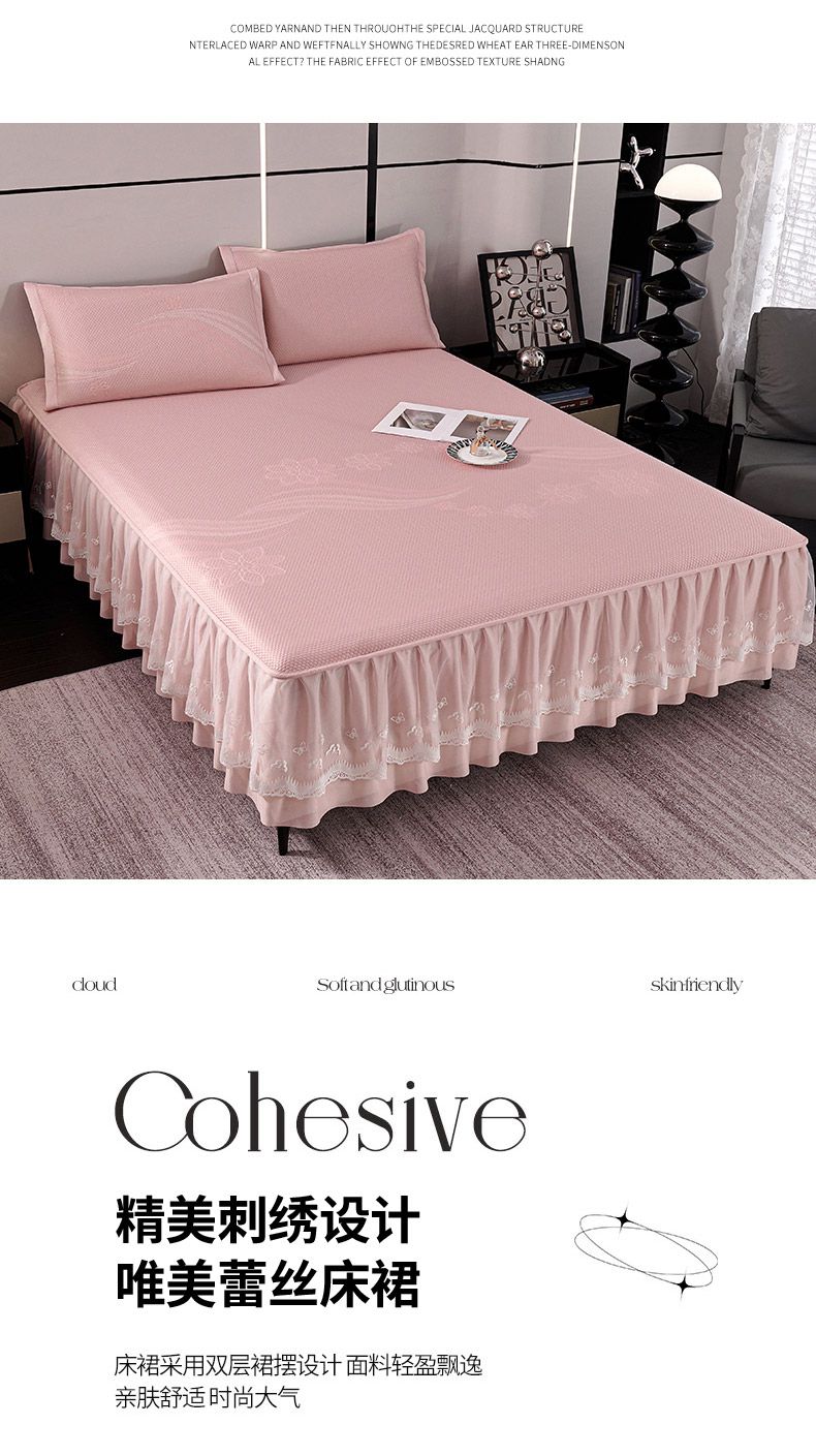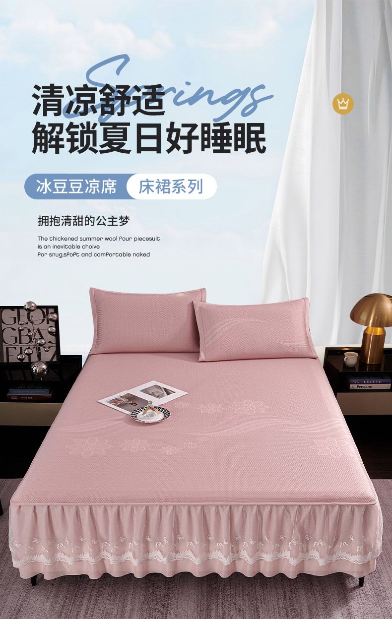 商品名称:梵克保罗 2025新款7A抗菌母婴级纯乙纶PE刺绣凉感丝豆豆席 床裙款 床裙款 浪花-水绿