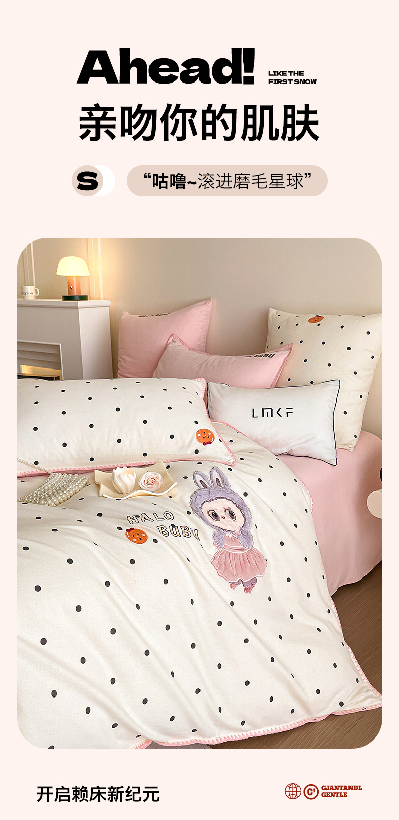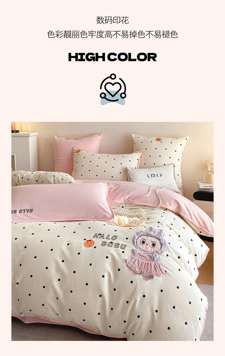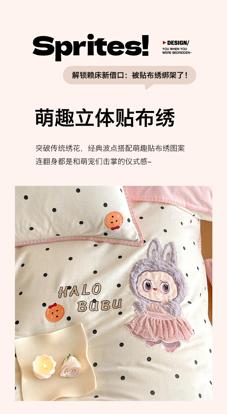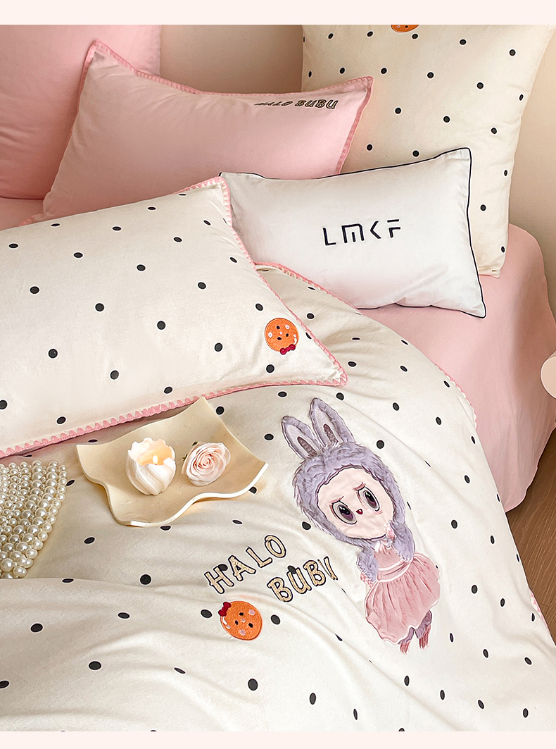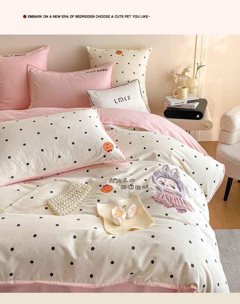 商品名称:蓝米卡夫 2025秋冬-A类全棉生态磨毛卡通绣花贝壳边系列(礼盒包装)【如需买家秀联系15996631948】 1号波点白-香草粉