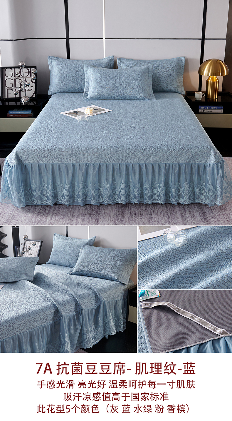 商品名称:梵克保罗 2025新款7A抗菌母婴级纯乙纶PE刺绣凉感丝豆豆席床单款 斜条纹-蓝