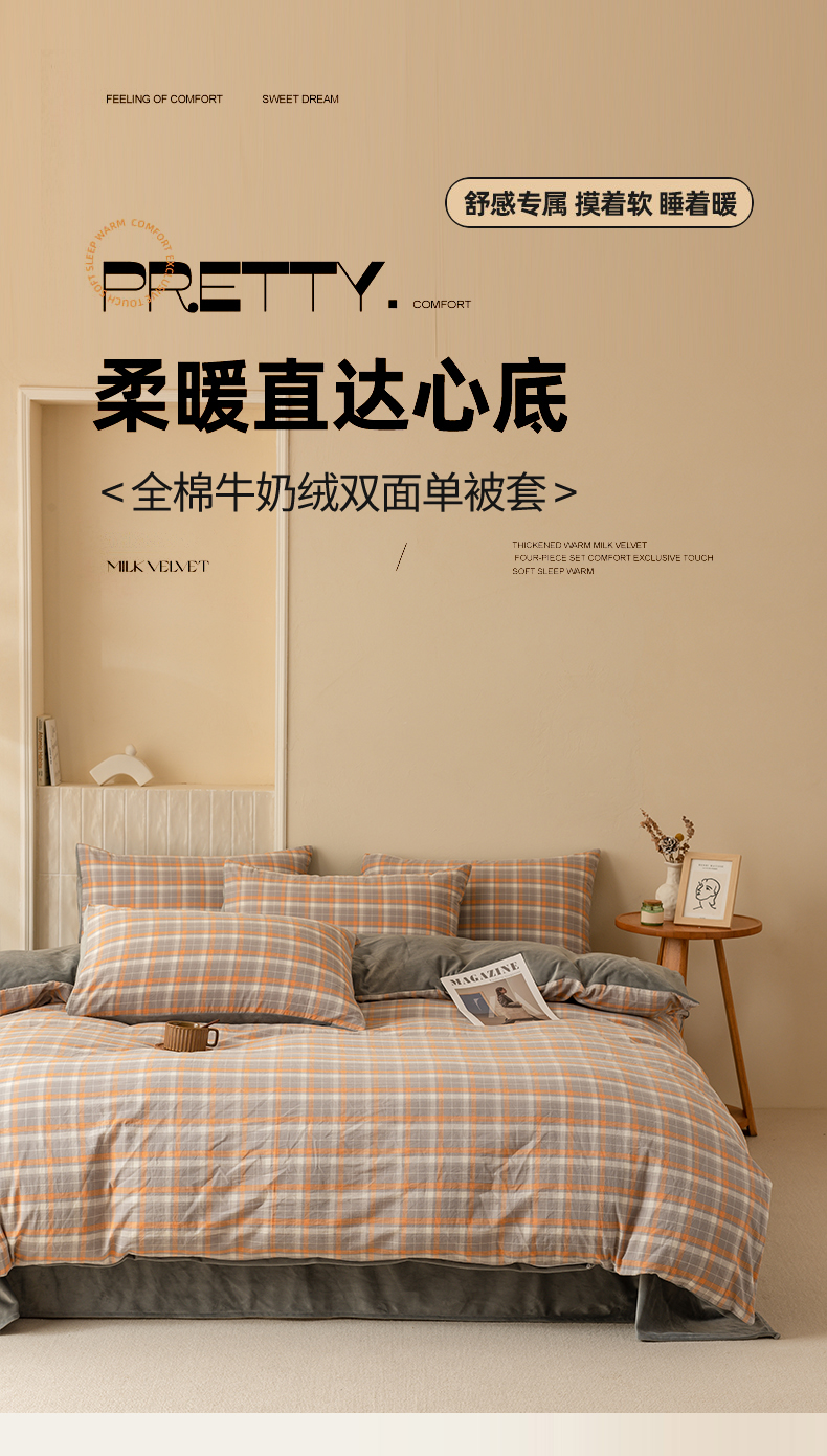 • 91家纺网 家纺一手货源 找家纺 雯雨家纺 2025新款全棉加牛奶绒宝宝绒一面棉一面绒单件被套单品被套 棉绒-诺卡