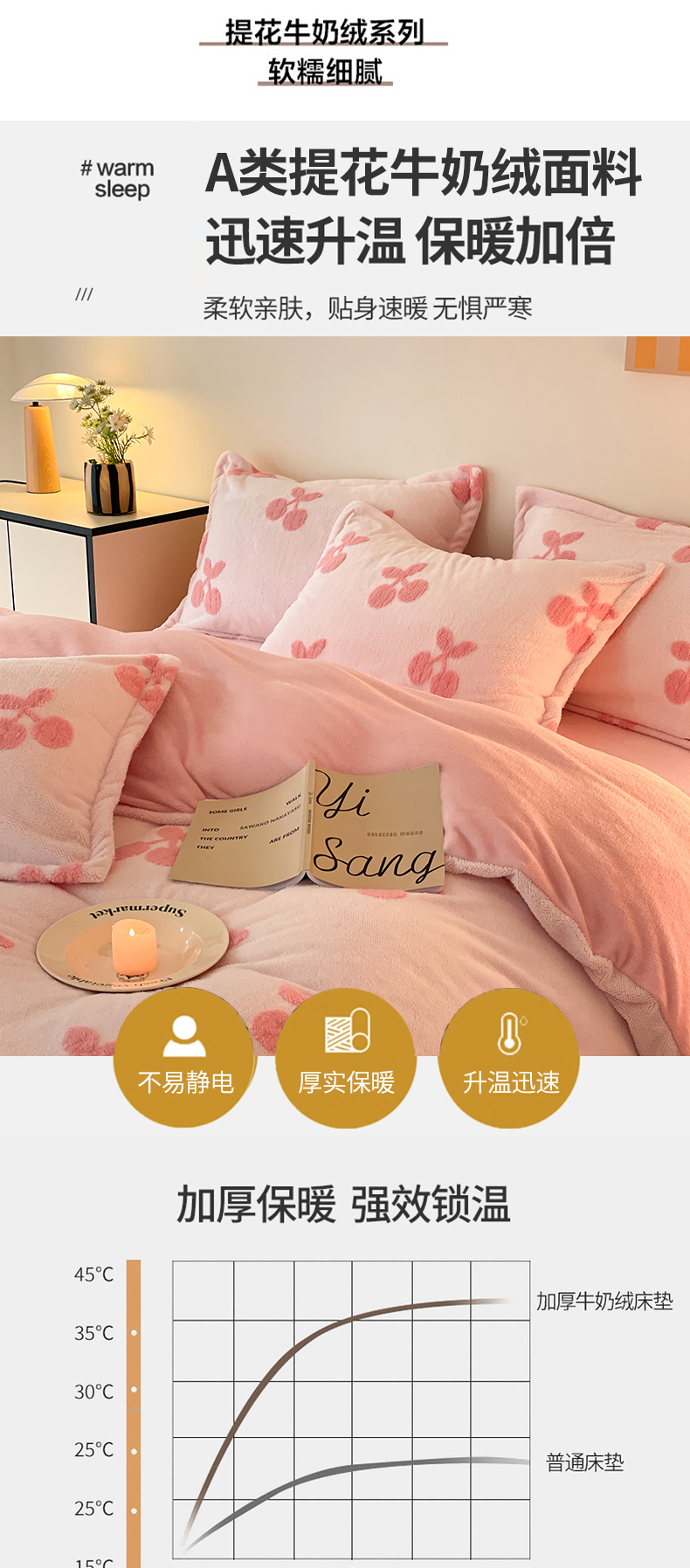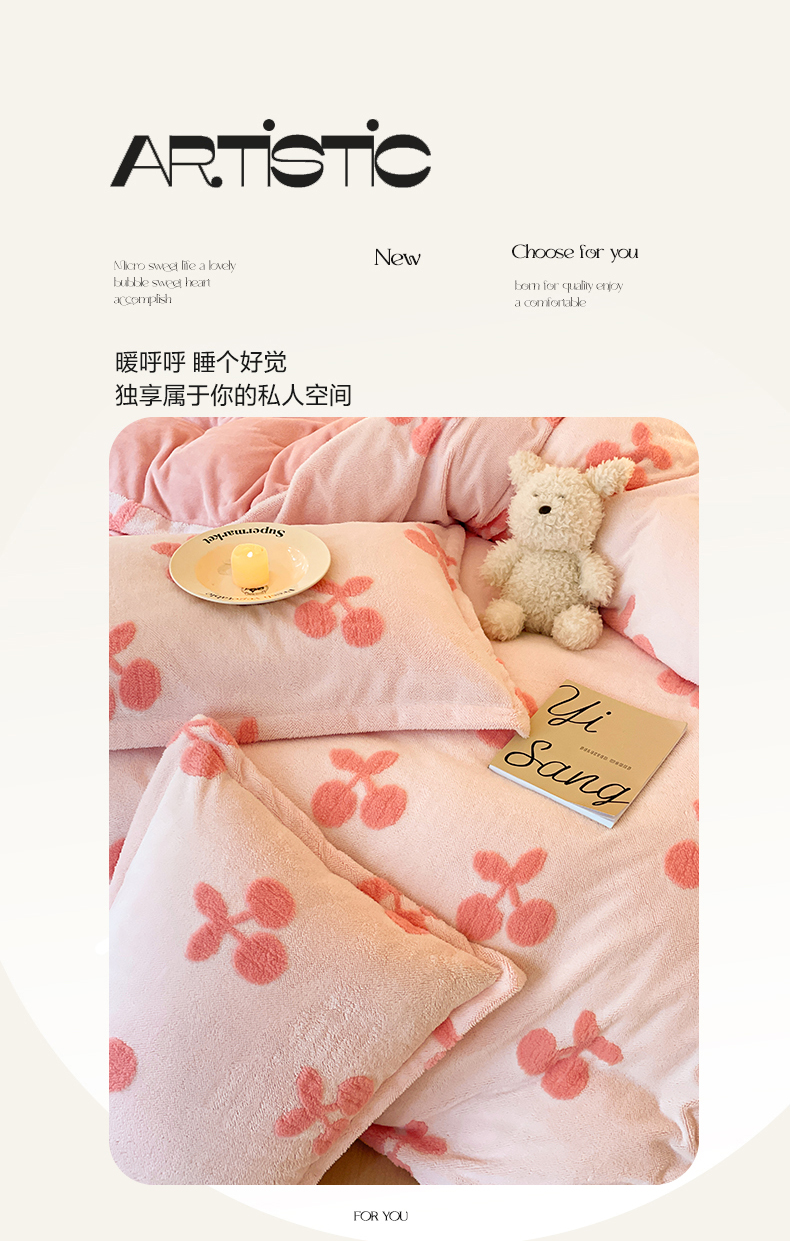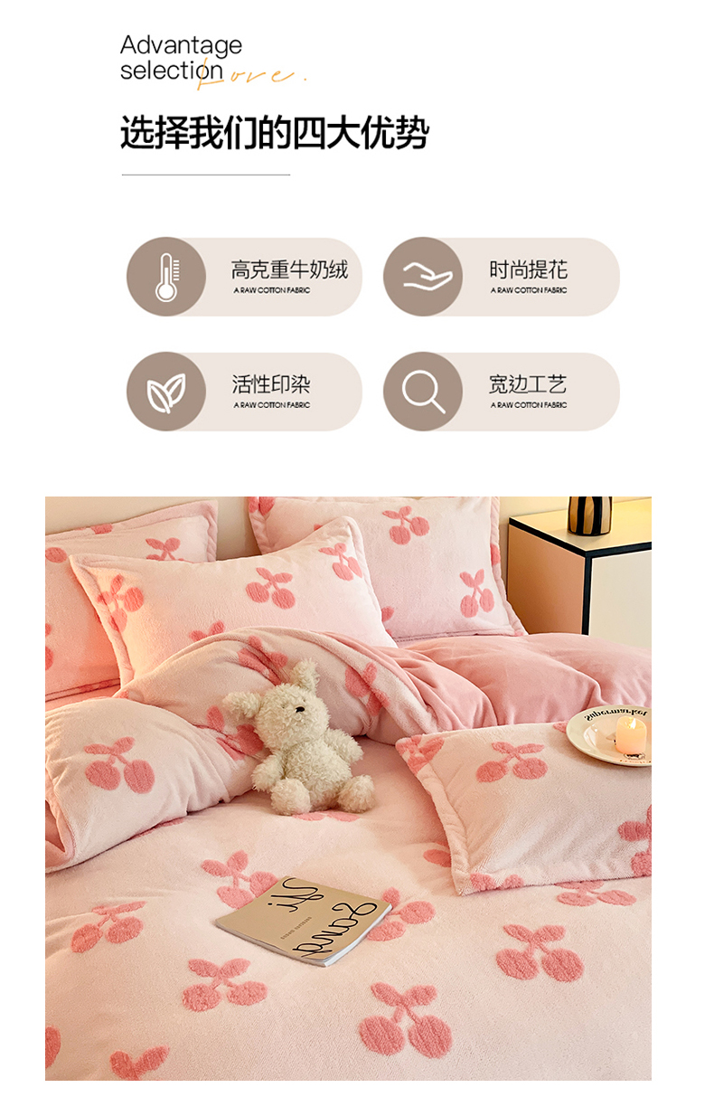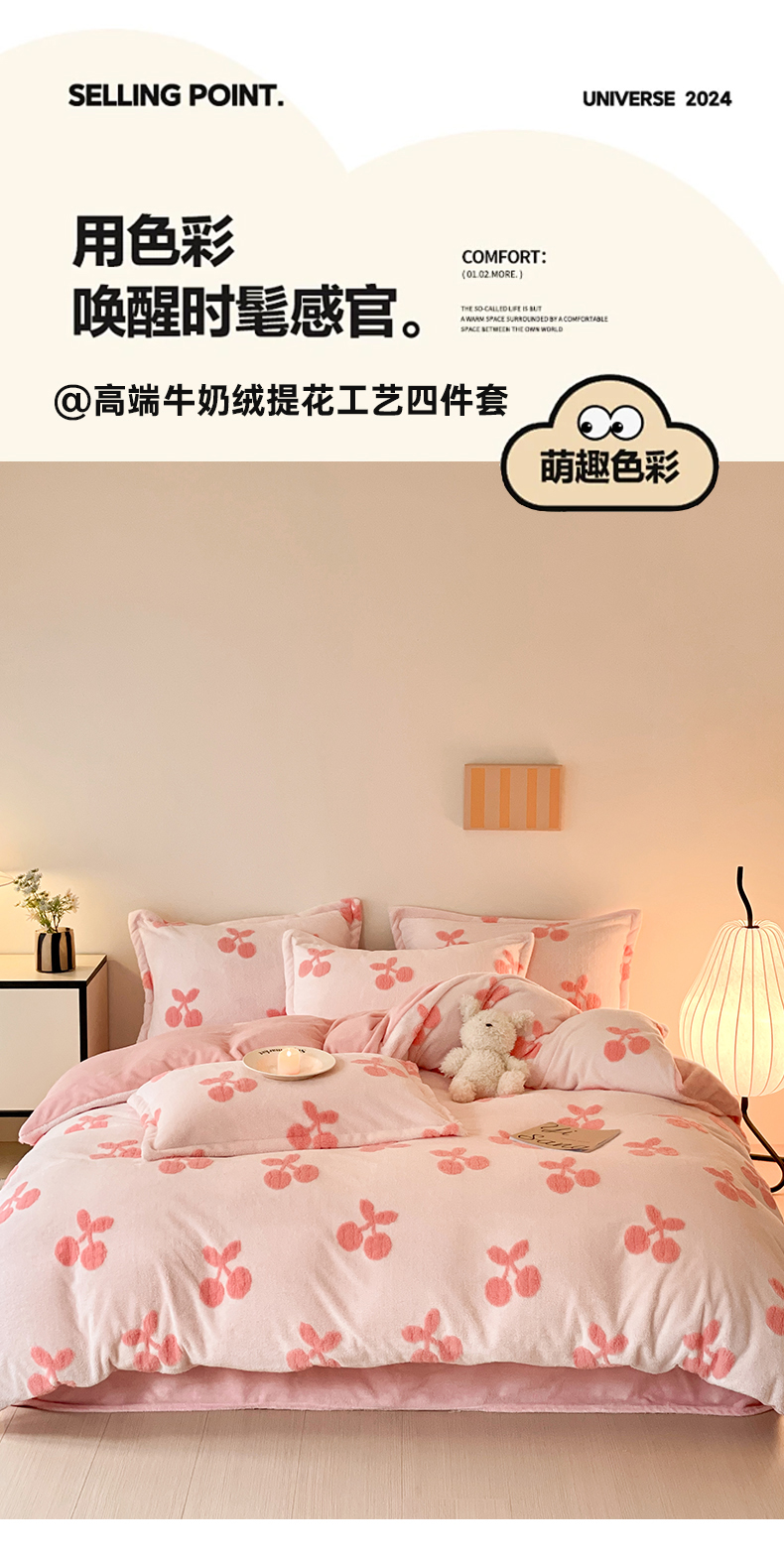 当前位置: 91家纺网 > 商品网购 > 床品套件 > 四件套 > 牛奶绒四件套 > 川悦生活 2025新款A类300克高克重提花牛奶绒四件套 奶甜樱桃