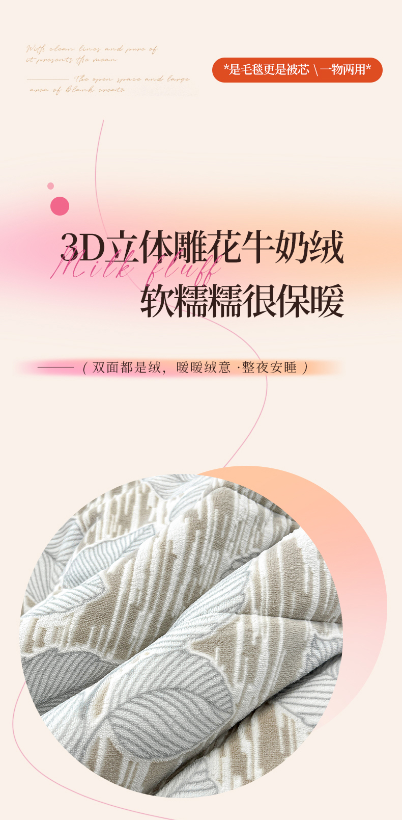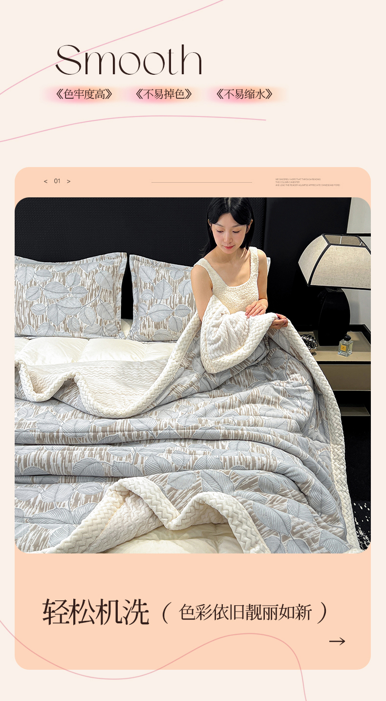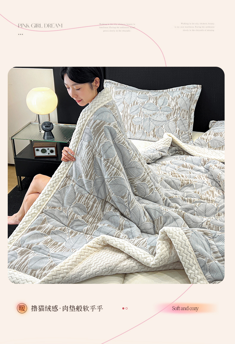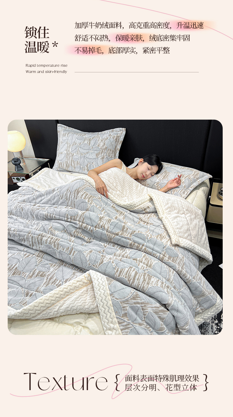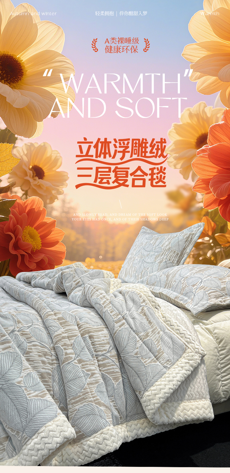 倾慕家纺 2026新款雕花绒贝贝绒三层复合保暖毯 三层毯仲夏晨歌蓝