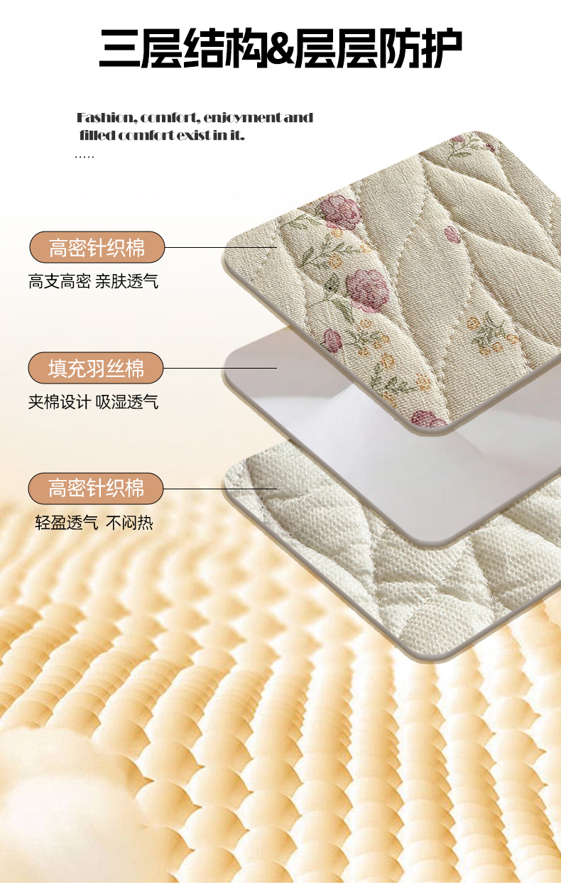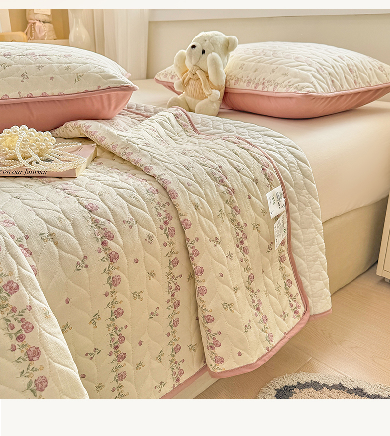 • 91家纺网 家纺一手货源 找家纺 汣沐生活 2025新款可水洗针织棉印花款夹棉床盖床盖三件套 夏日蔷薇