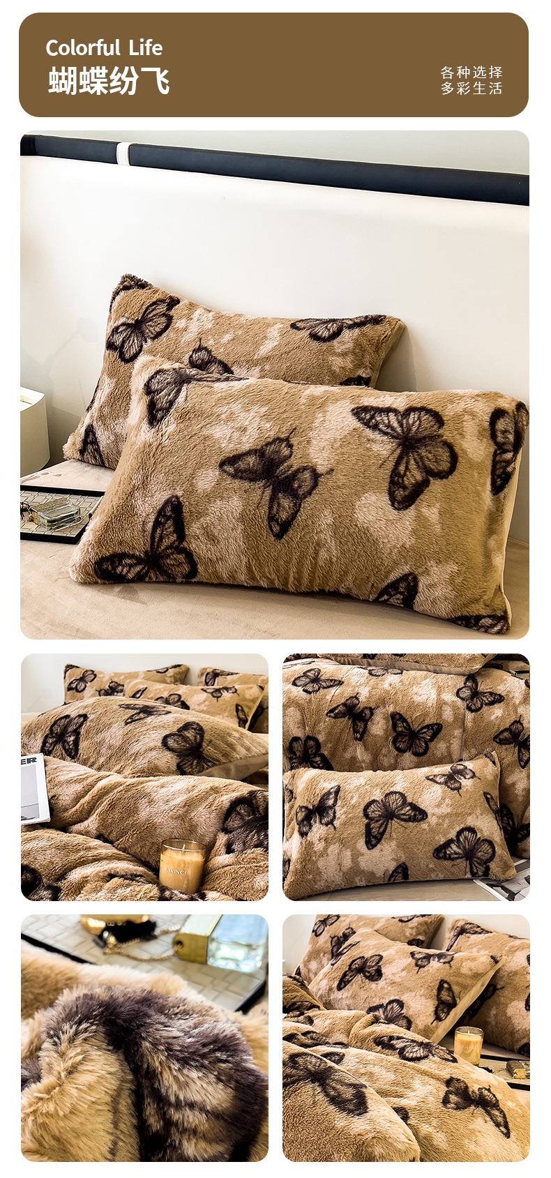 商品名称:倾慕家纺 2026新款高克重兔毛绒保暖单枕套 斑马纹绿
