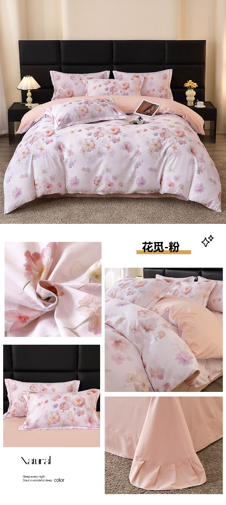 商品名称:馨雅家纺 2025新款全棉磨毛数码印花四件套 花觅-粉