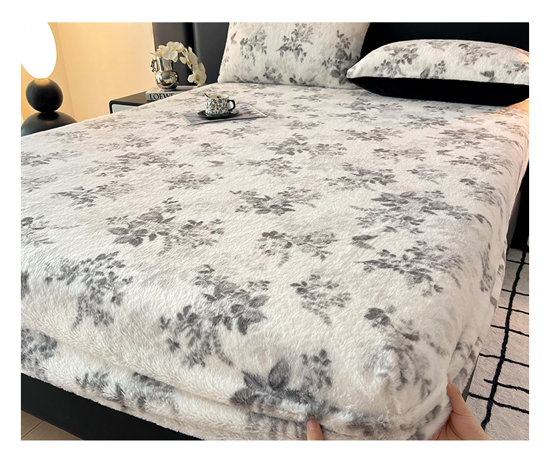 商品名称:莉莉安家纺 2025新款兔毛绒美拉德色系床笠床笠单件 美拉德-墨花