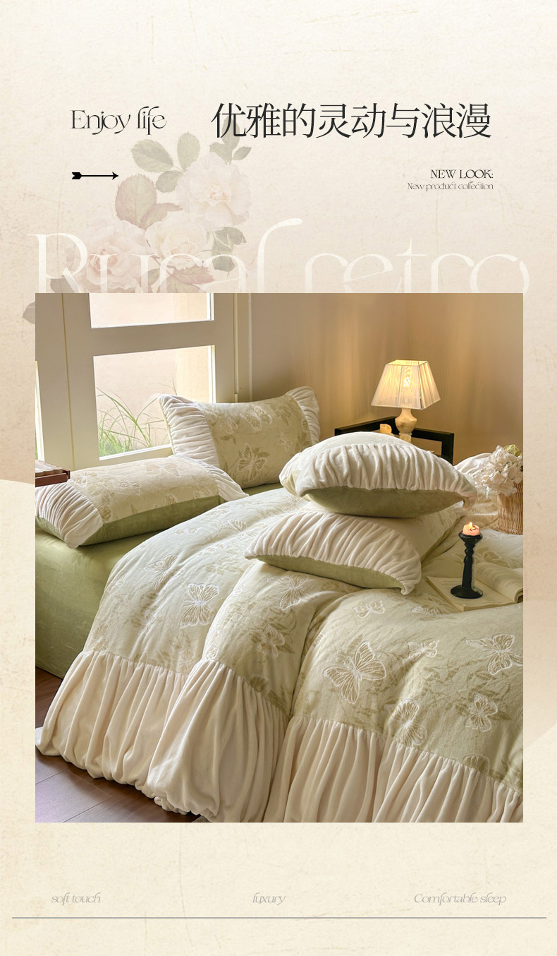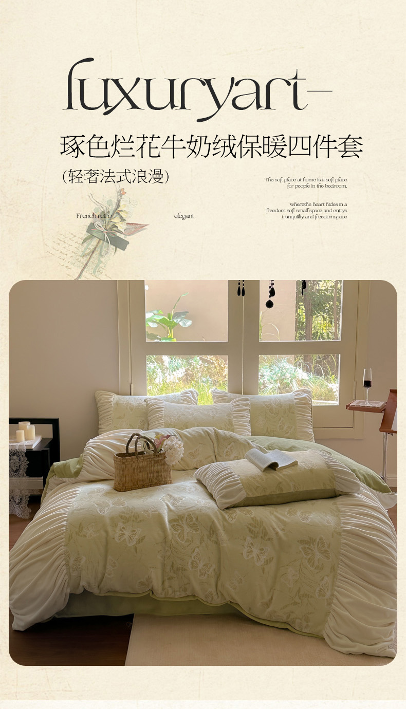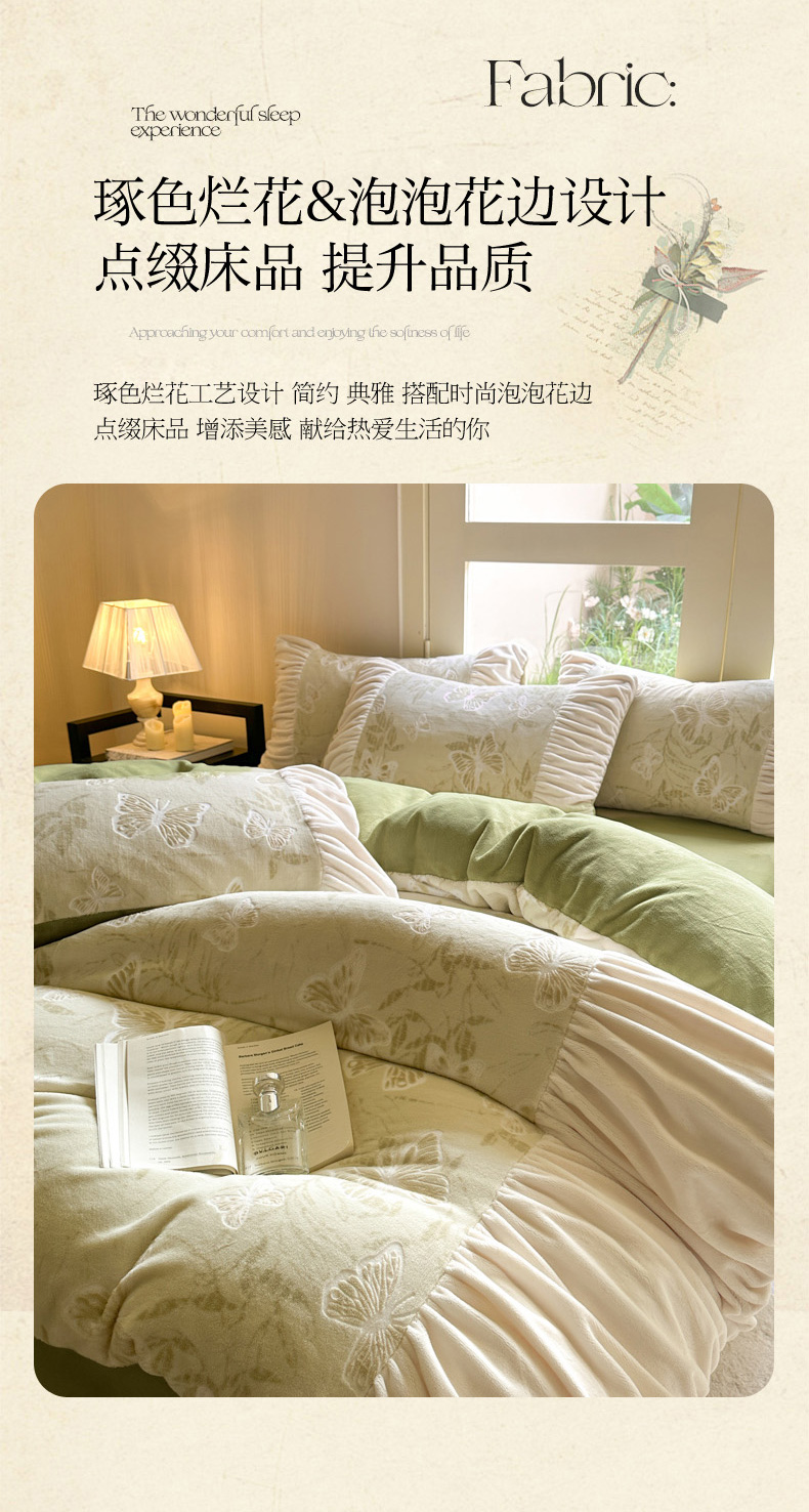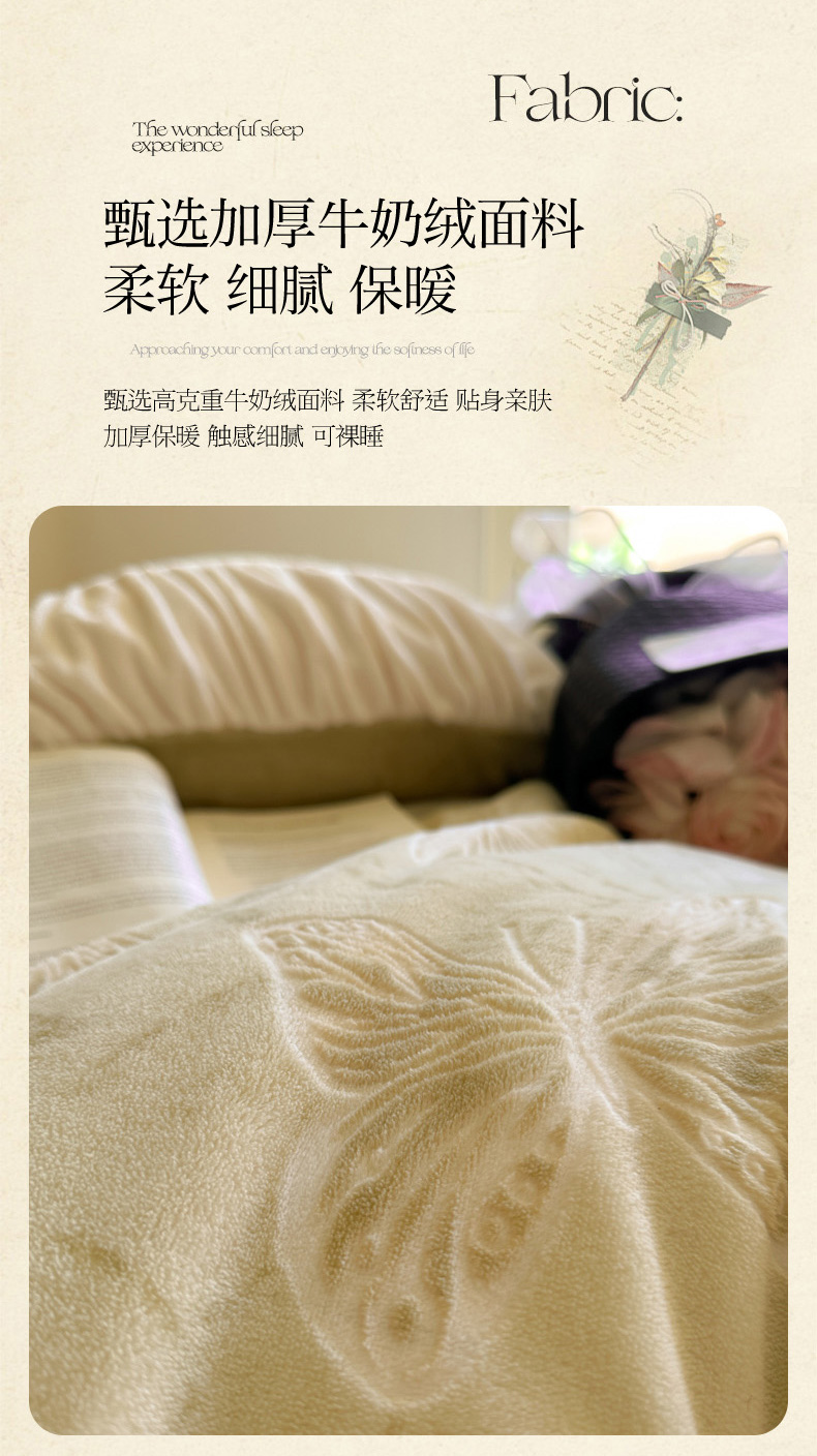 当前位置: 91家纺网 > 商品网购 > 床品套件 > 四件套 > 牛奶绒四件套 > 慕澄家纺 2025新款高克重泡泡袖琢色雕花牛奶绒四件套 约定