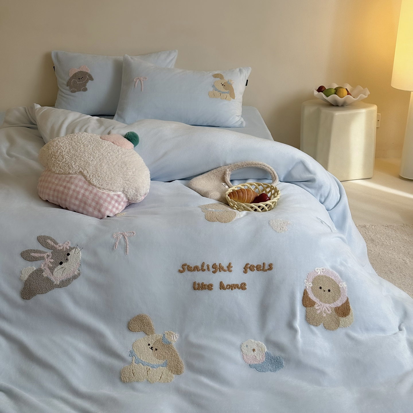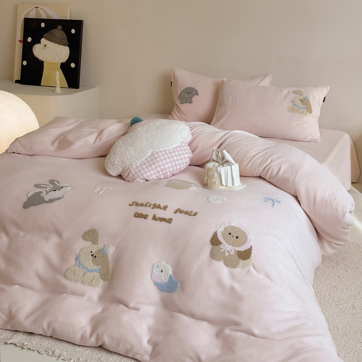 当前位置: 91家纺网 > 商品网购 > 床品套件 > 四件套 > 牛奶绒四件套 > 鹿班家居 2025新款冬季高克重牛奶绒毛巾绣系列四件套-可爱丽小兔(标准会员-10元) 粉色