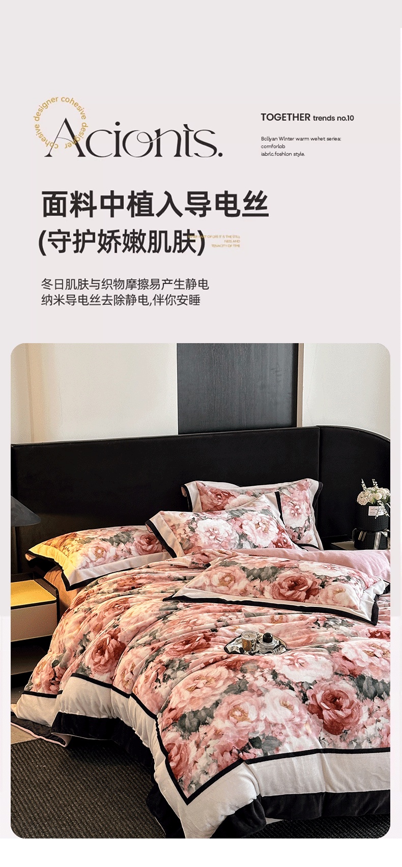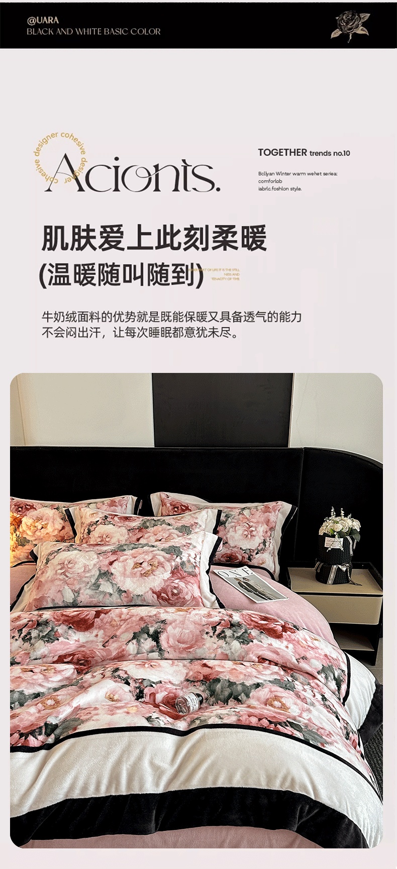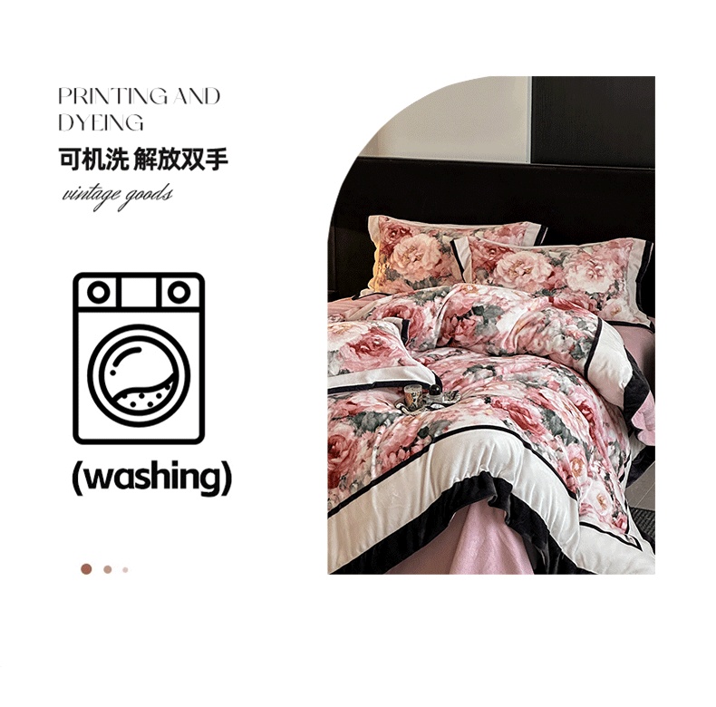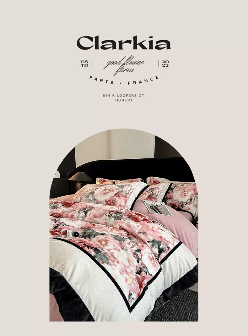 商品名称:花漾家居 2025新款秋冬新品法式轻奢复古宽边大版牛奶绒四件套(提供买家秀) 玫瑰从中