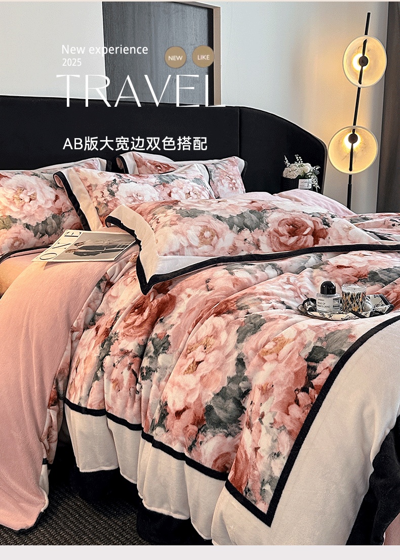 花漾家居 2025新款秋冬新品法式轻奢复古宽边大版牛奶绒四件套(提供买家秀) 玫瑰从中
