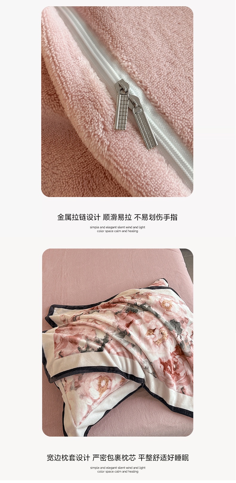 花漾 2024新款欧式轻奢压线牛奶绒四件套 舞动字母粉,舞动字母粉