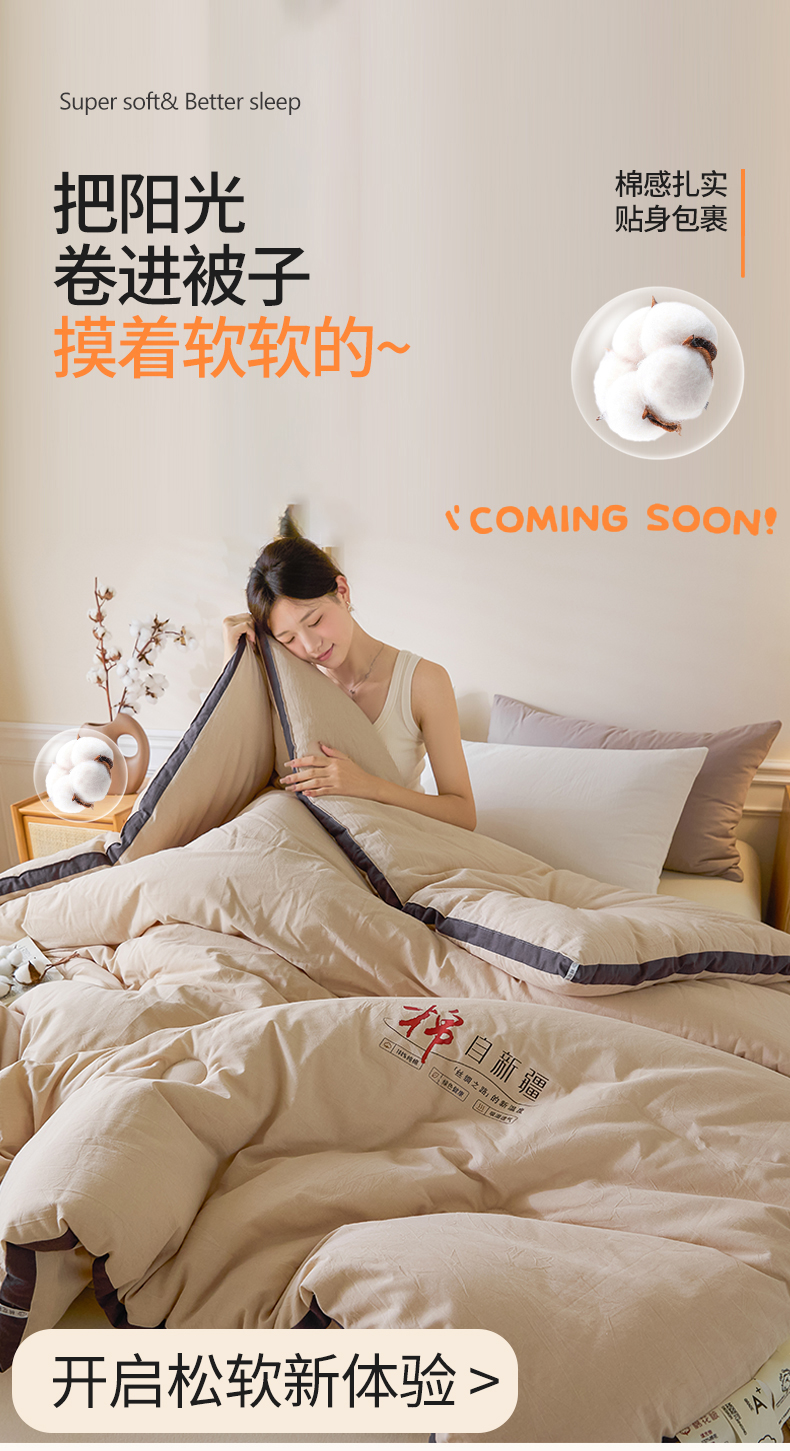 • 91家纺网 家纺一手货源 找家纺 (总)创优家纺 2025创优新款无印风100%新疆棉花被被子被芯春秋被冬被棉被单双人四季被小舒芯系列(棉花包检测),小舒芯-米白,小舒芯-粉,小舒芯-灰,小舒芯-咖