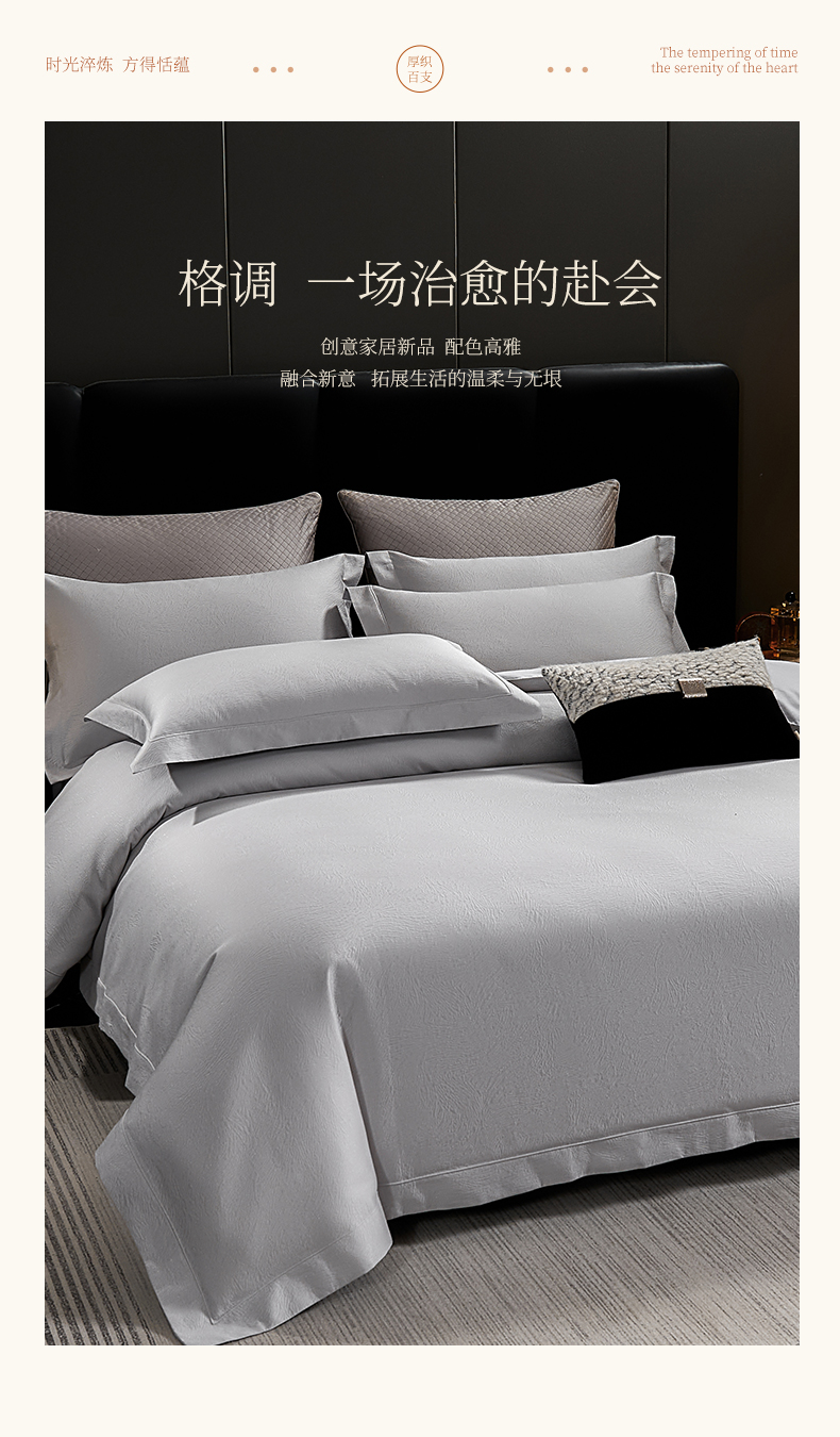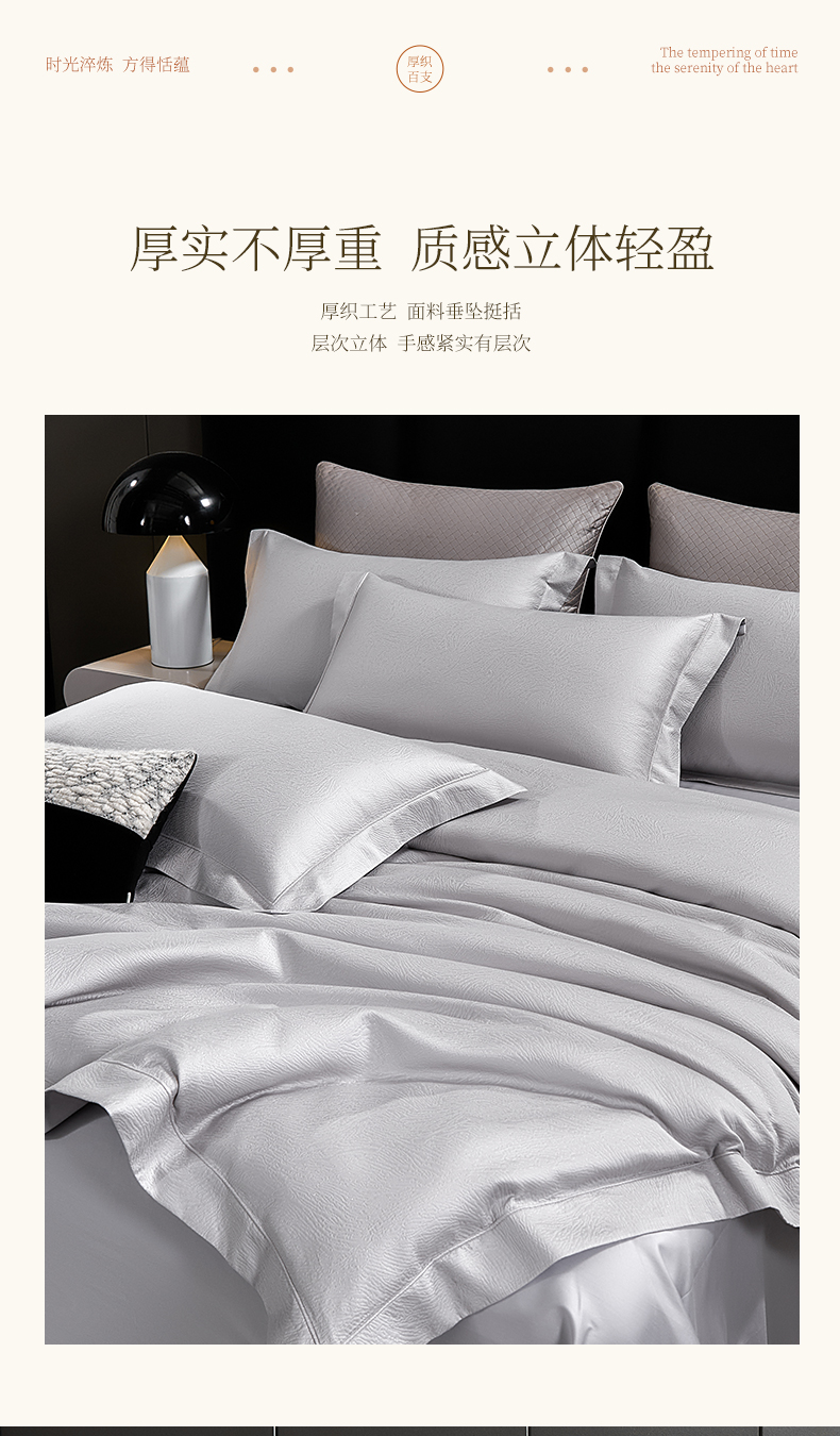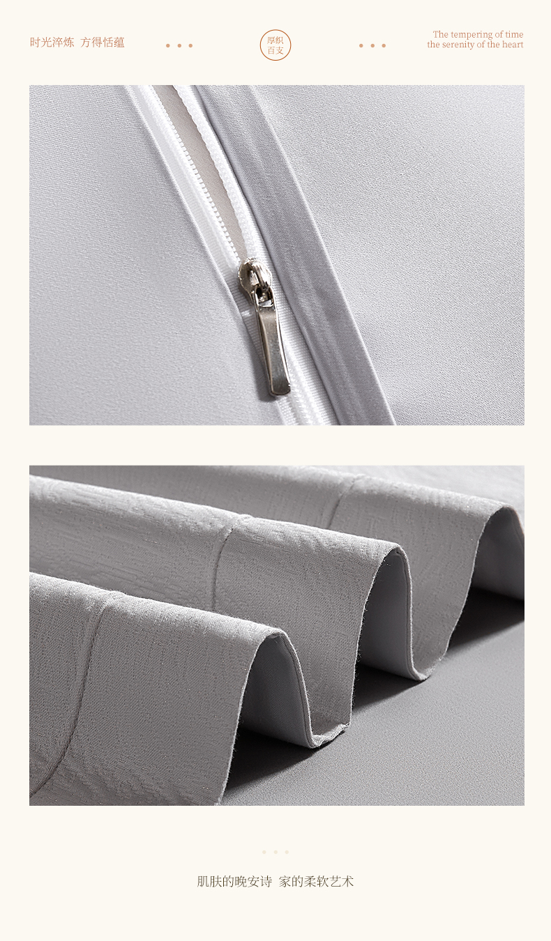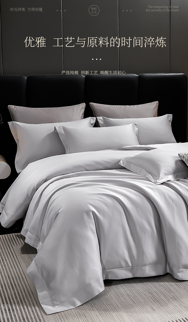 商品名称:元元家居(元元被业) 2025新款百支全棉高精密厚织系列四件套-恬蕴系列 恬蕴-远山灰