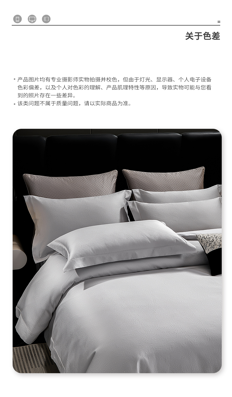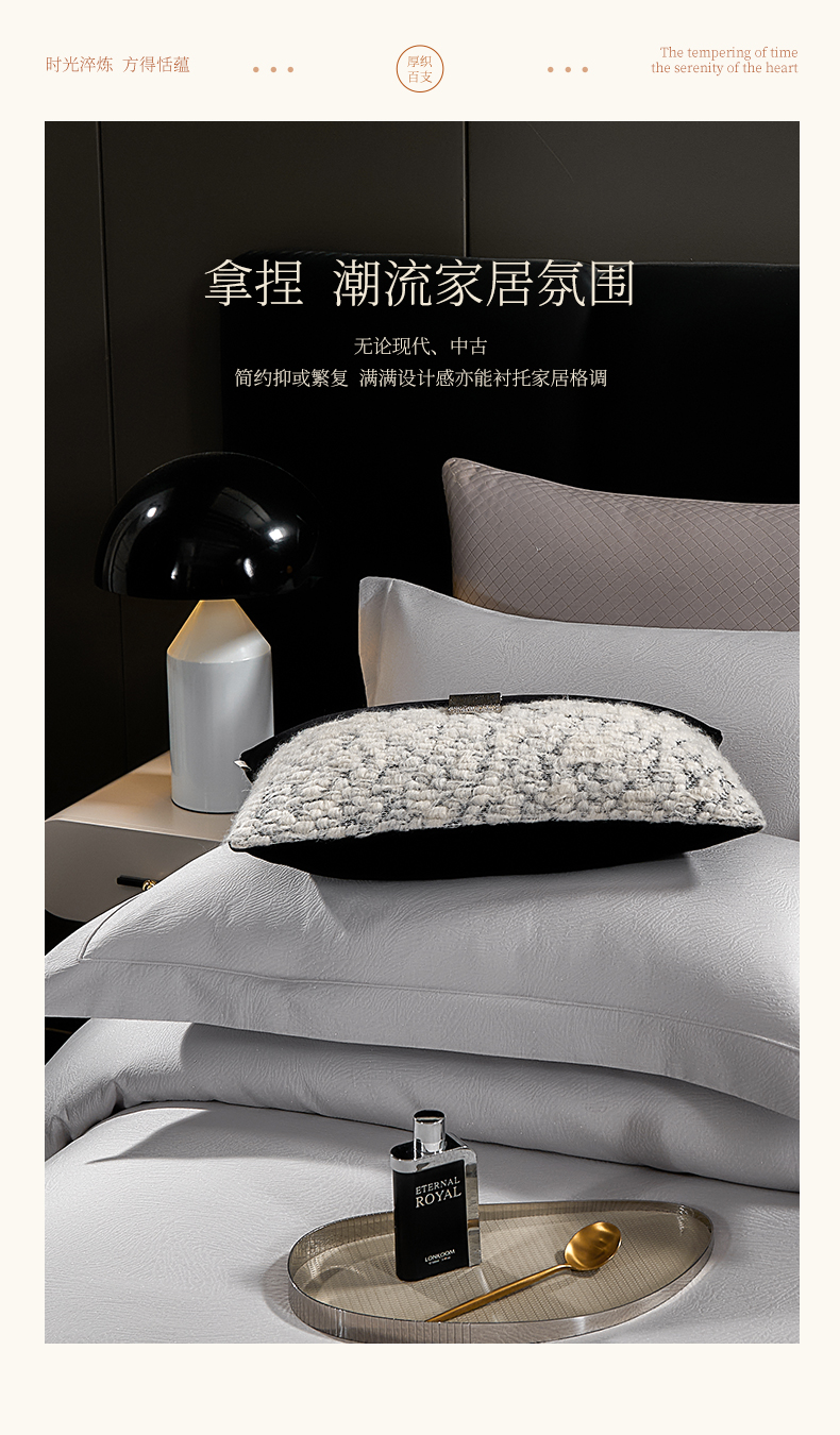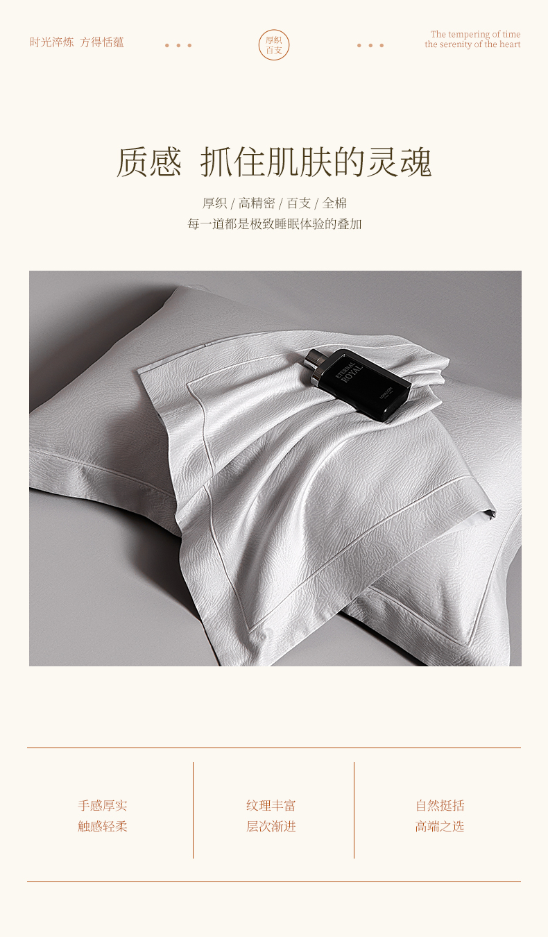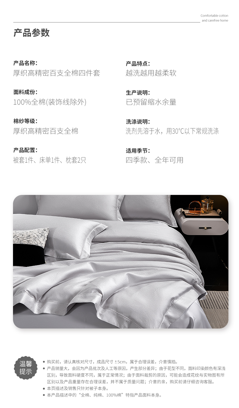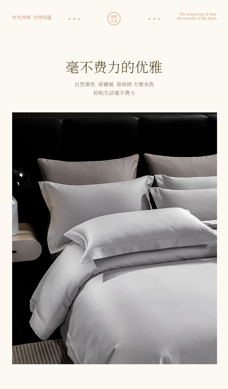 商品名称:元元家居(元元被业) 2025新款百支全棉高精密厚织系列四件套-恬蕴系列 恬蕴-远山灰
