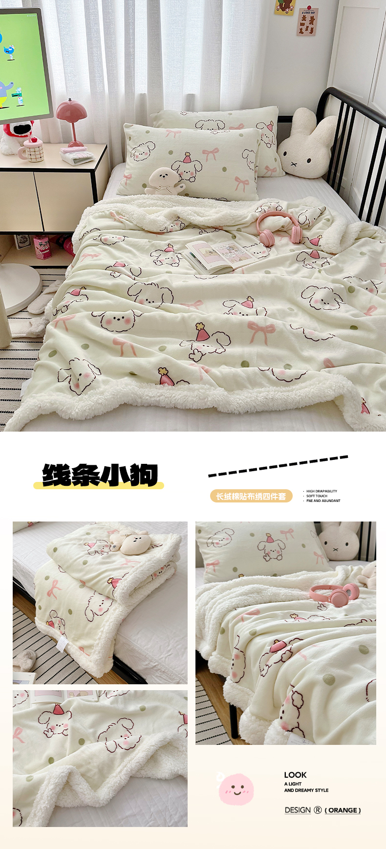(总)寐居家纺 2025新款毛球毛巾绣牛奶绒四件套,毛球球·巴克汪仔,毛球球·豆蔻女孩,毛球球·奶黄拉布,毛球球·心动KT喵,组合图仅供展示不可下单