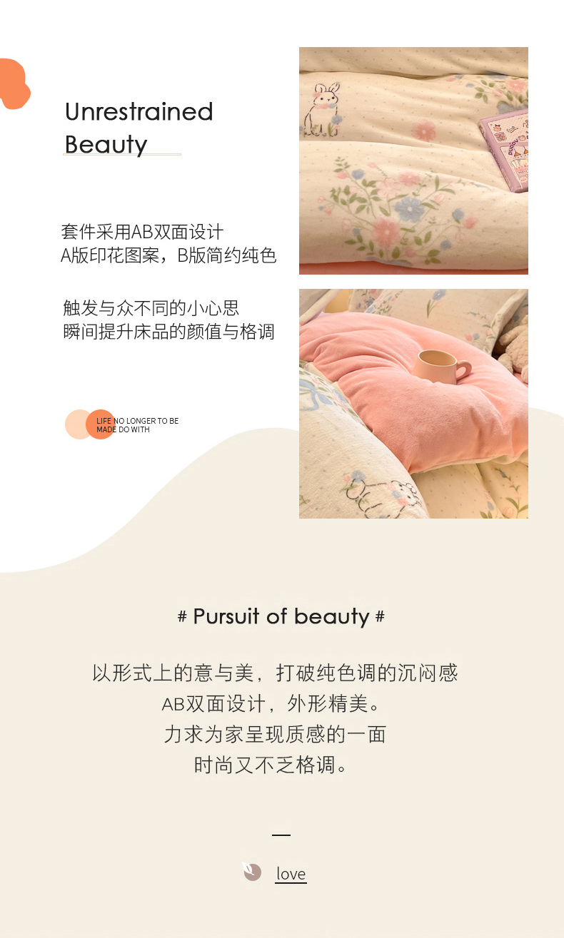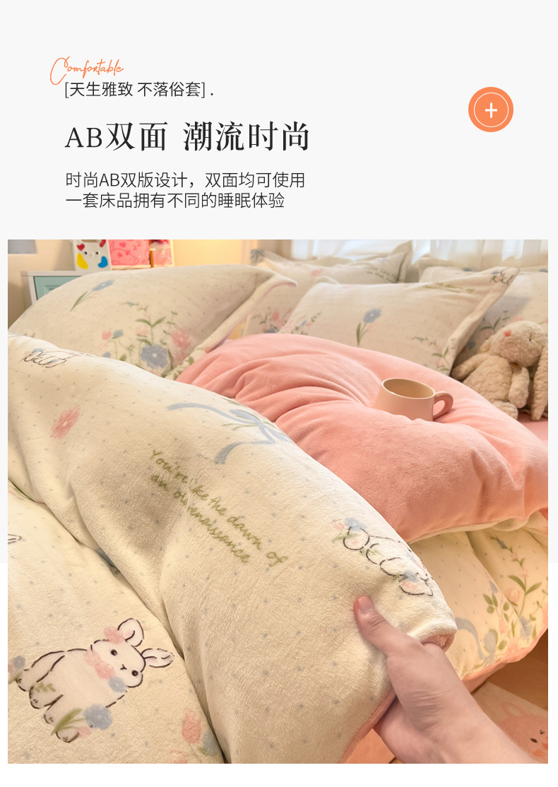 慕尚家纺 2025新款田园花卉类印花牛奶绒高克重单被套 鲜花小兔