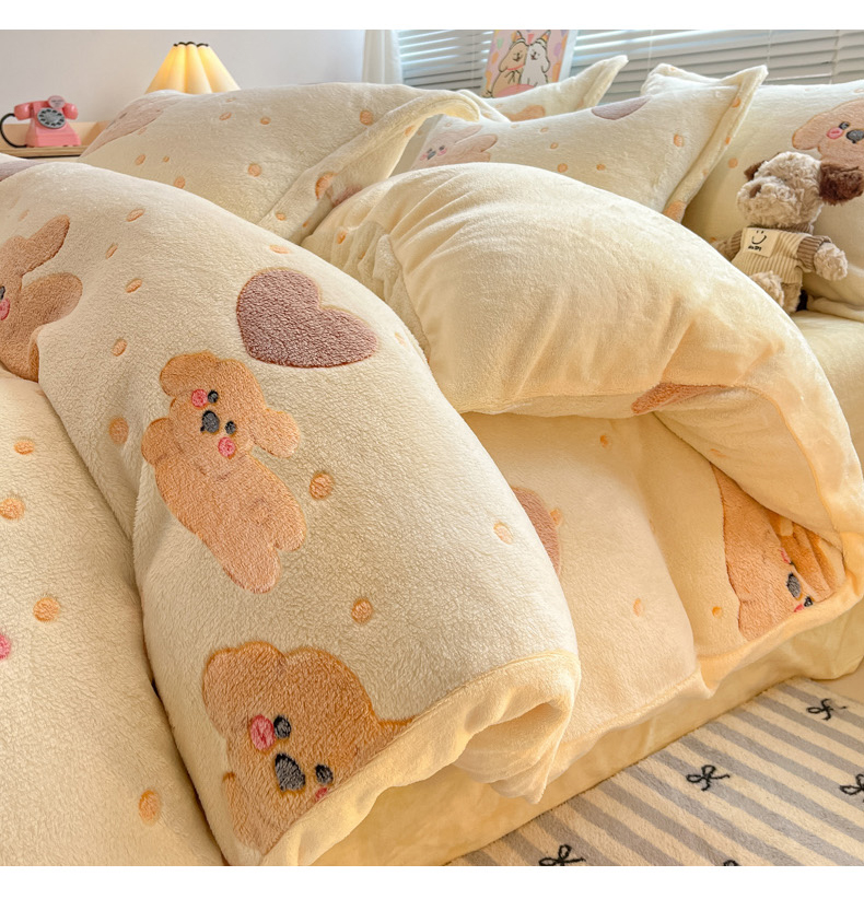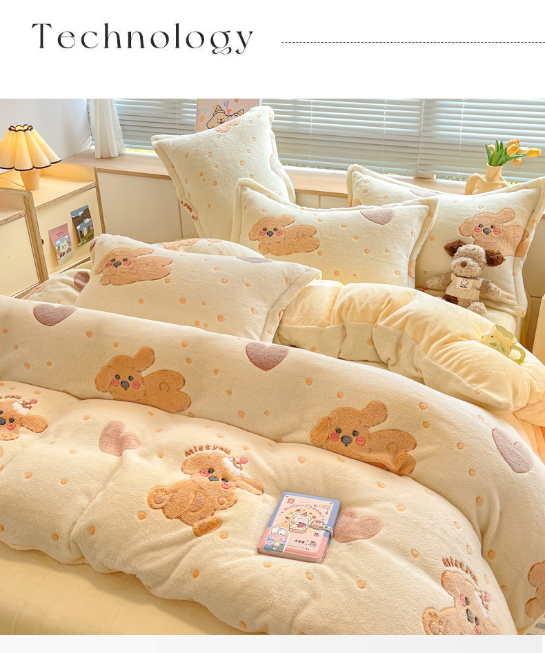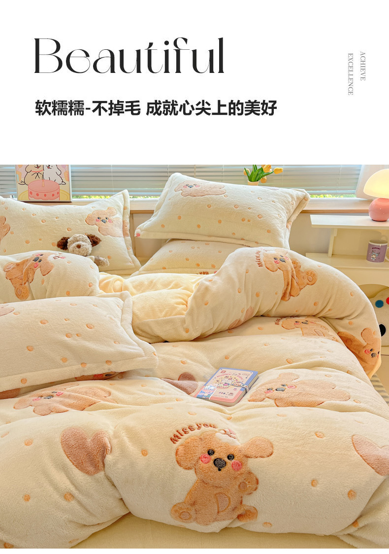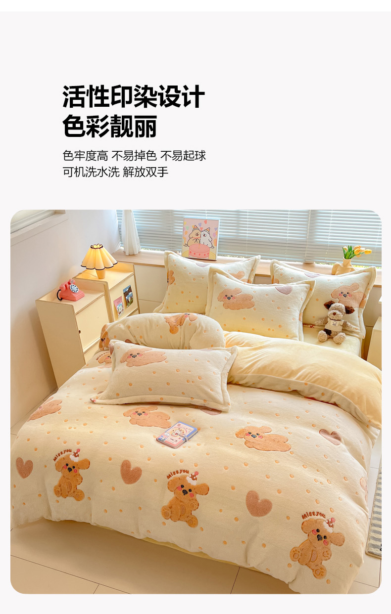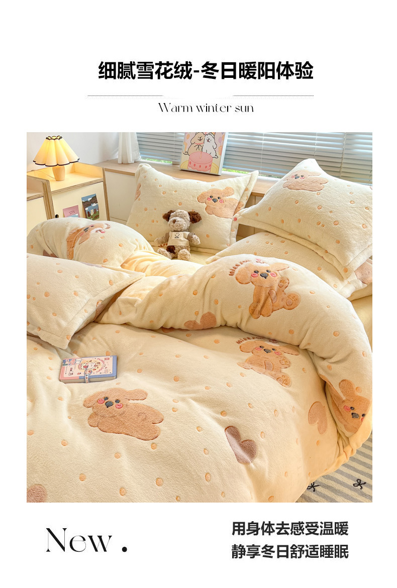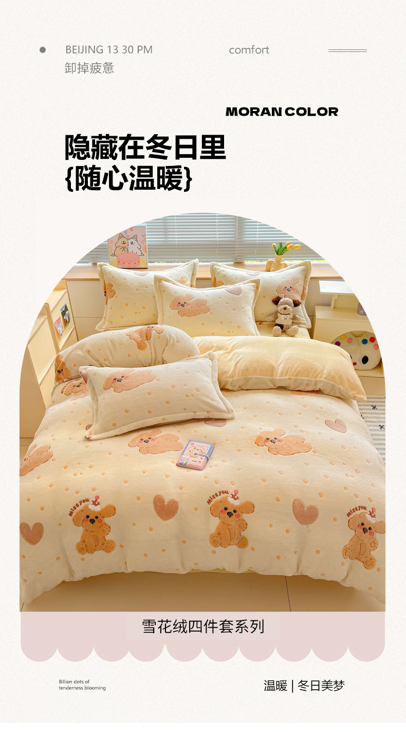 (总)慕尚家纺 2025新款豆豆绒刺绣四件套,大耳狗 白蓝,玫瑰 白粉