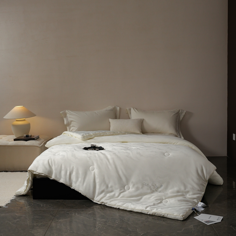 (总)丽卡家纺 2025新款繁花羊绒蚕丝子母被被子被芯,繁花羊绒蚕丝子母被-白色,繁花羊绒蚕丝子母被-卡其