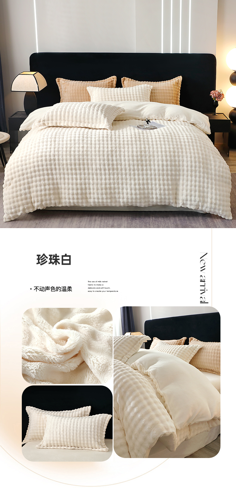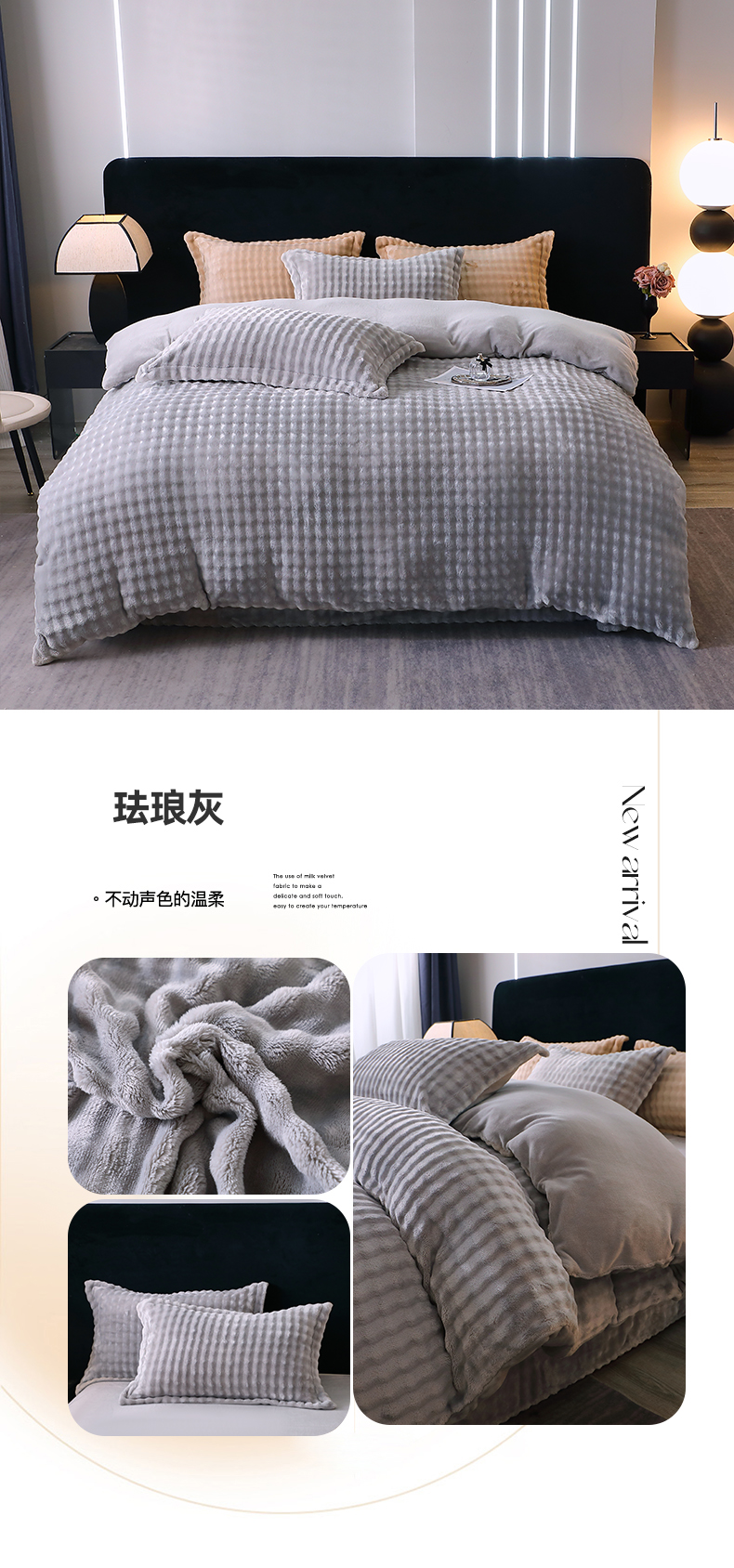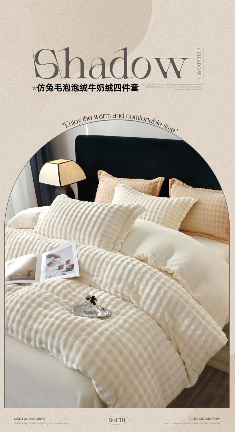 (总)坦客毯业 2025新款泡泡绒仿兔毛绒四件套牛奶绒4件套8斤重加厚高密保暖,琉璃蓝,绅士灰,珍珠白