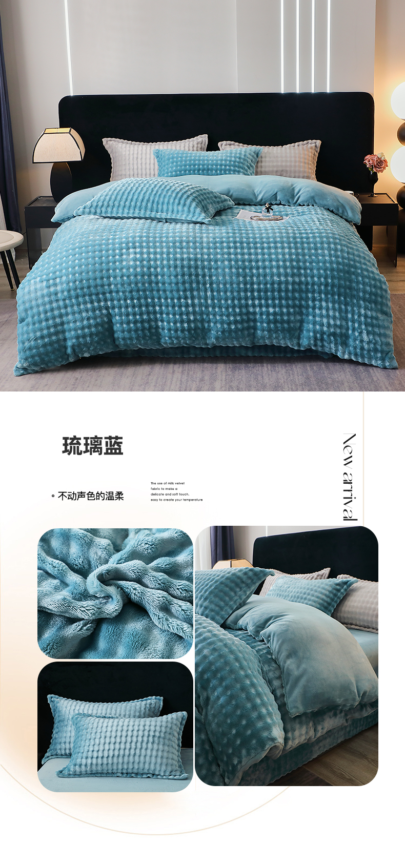 商品名称:坦客毯业 2025新款泡泡绒仿兔毛绒四件套牛奶绒4件套8斤重加厚高密保暖 琉璃蓝