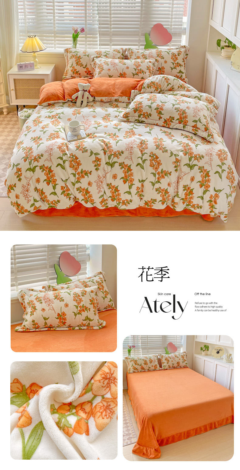 商品名称:丽涵家纺 2025秋冬新品230克全工艺消光牛奶绒印花四件套 爱的海洋
