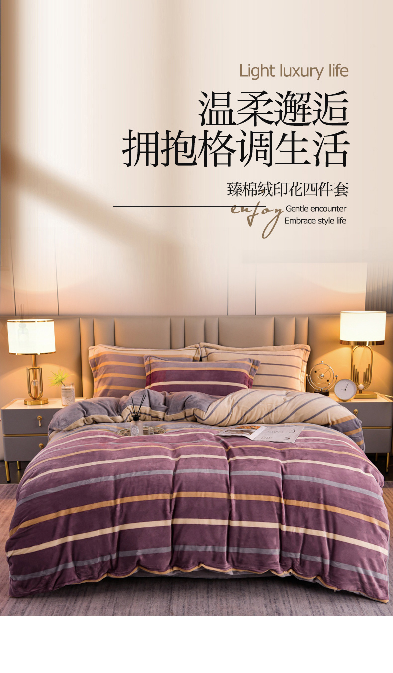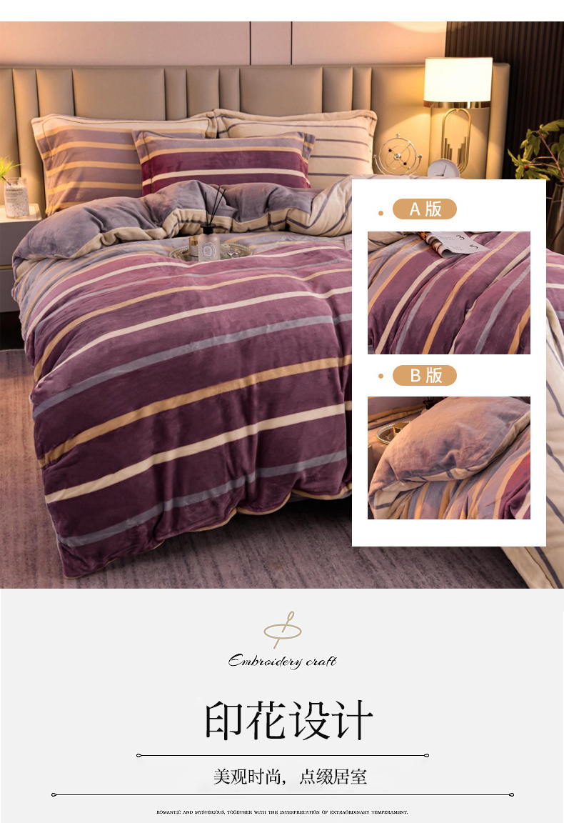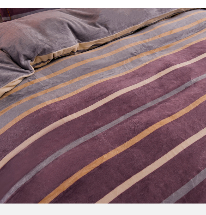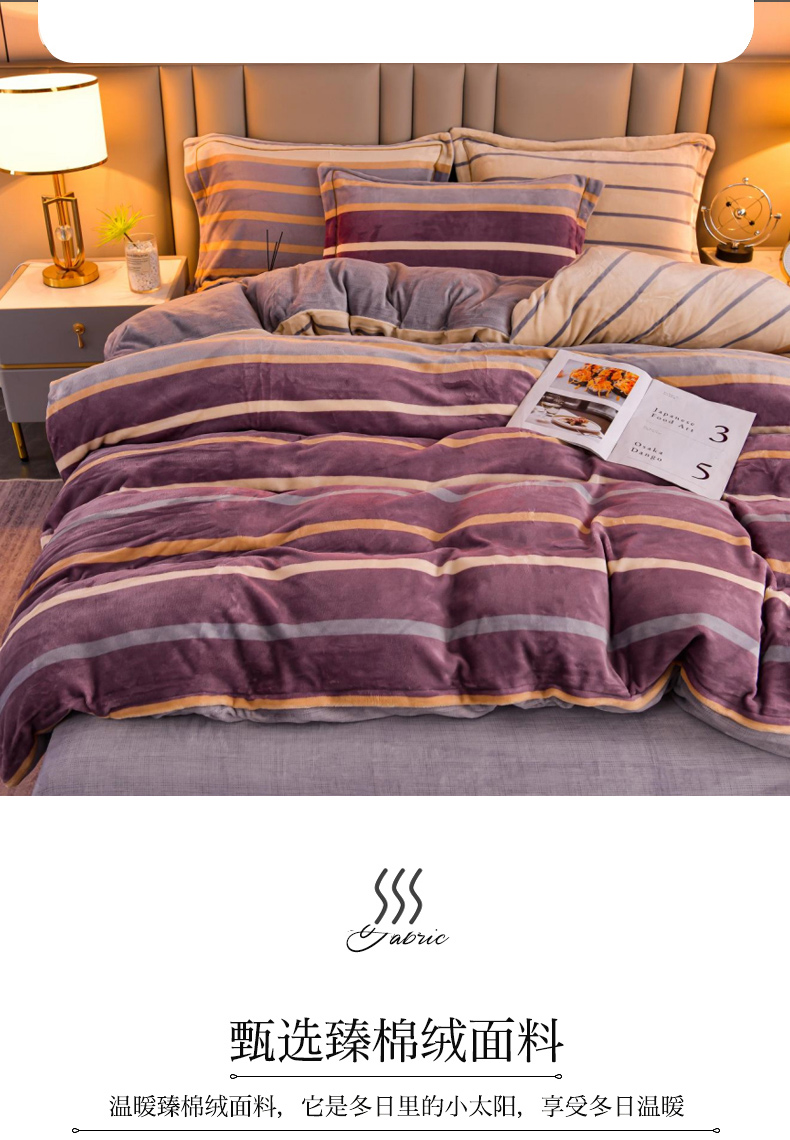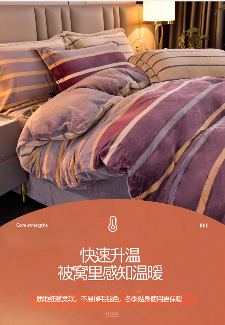 商品名称:丽涵家纺 2025秋冬新品230克全工艺消光牛奶绒印花四件套 绅士条纹-红咖