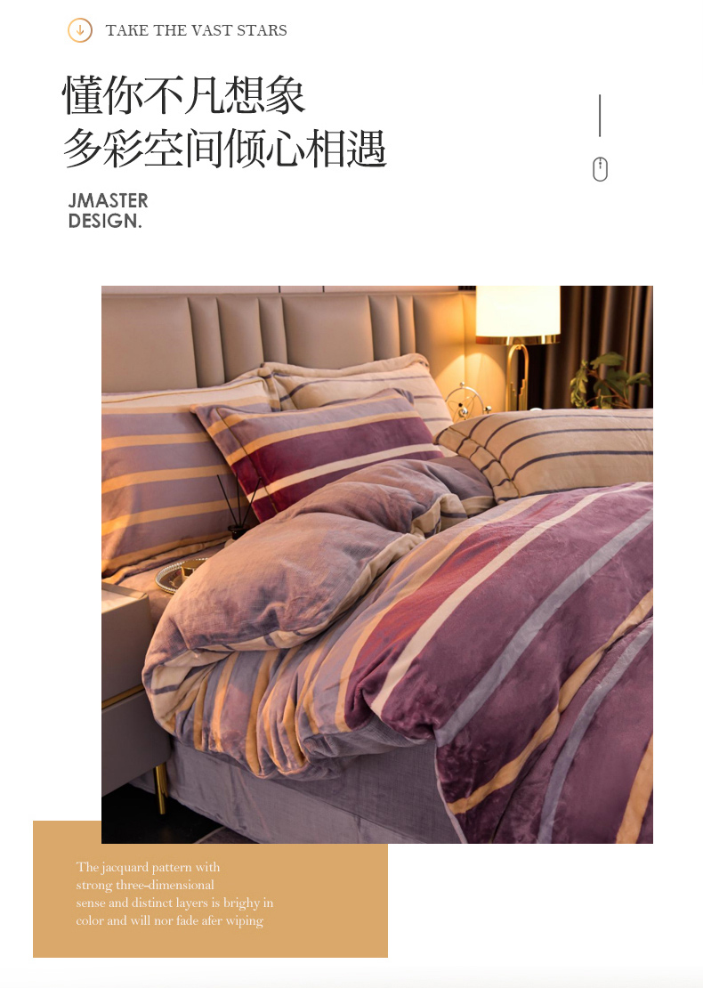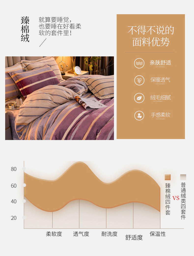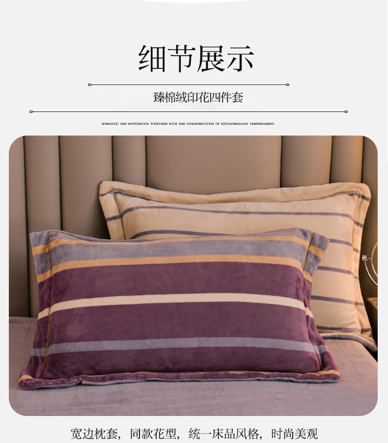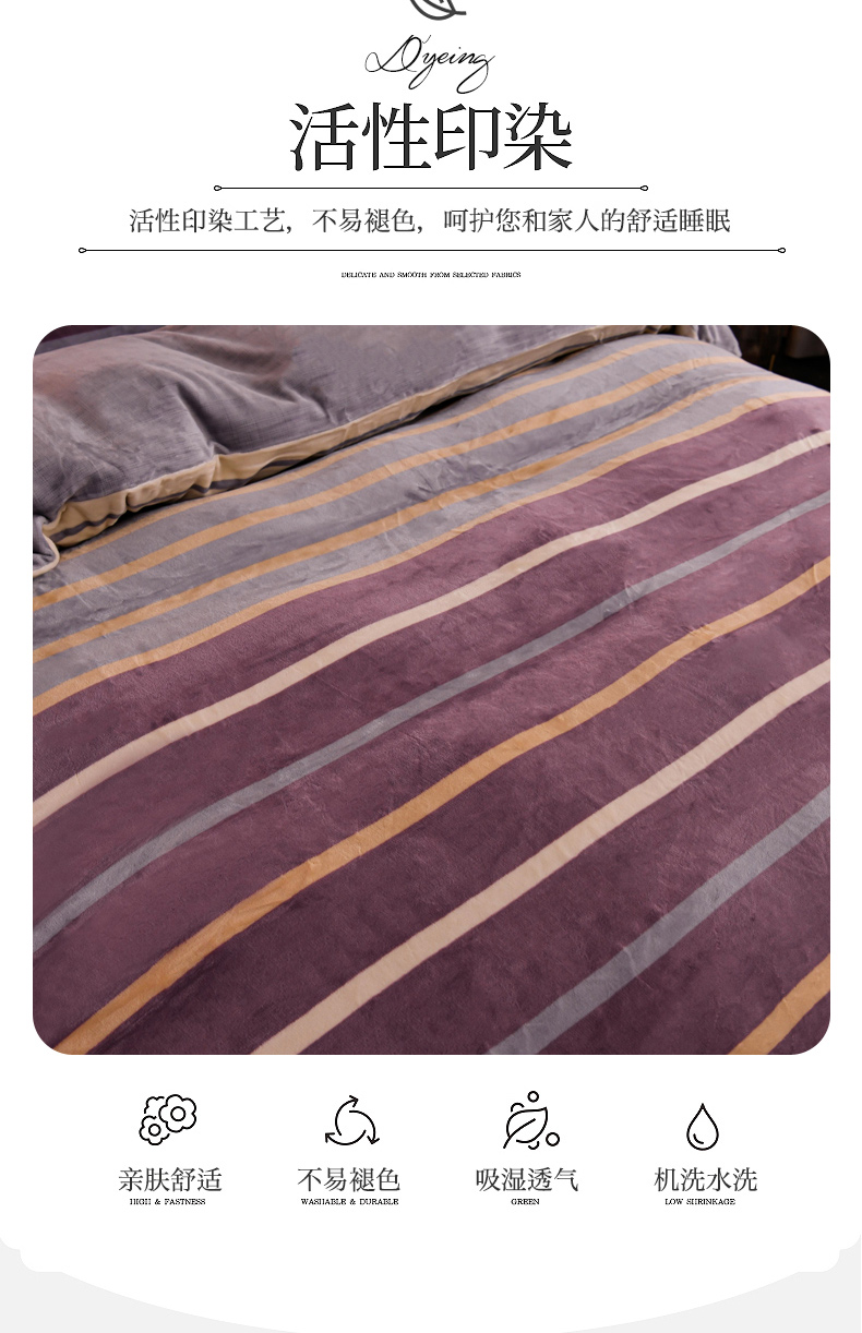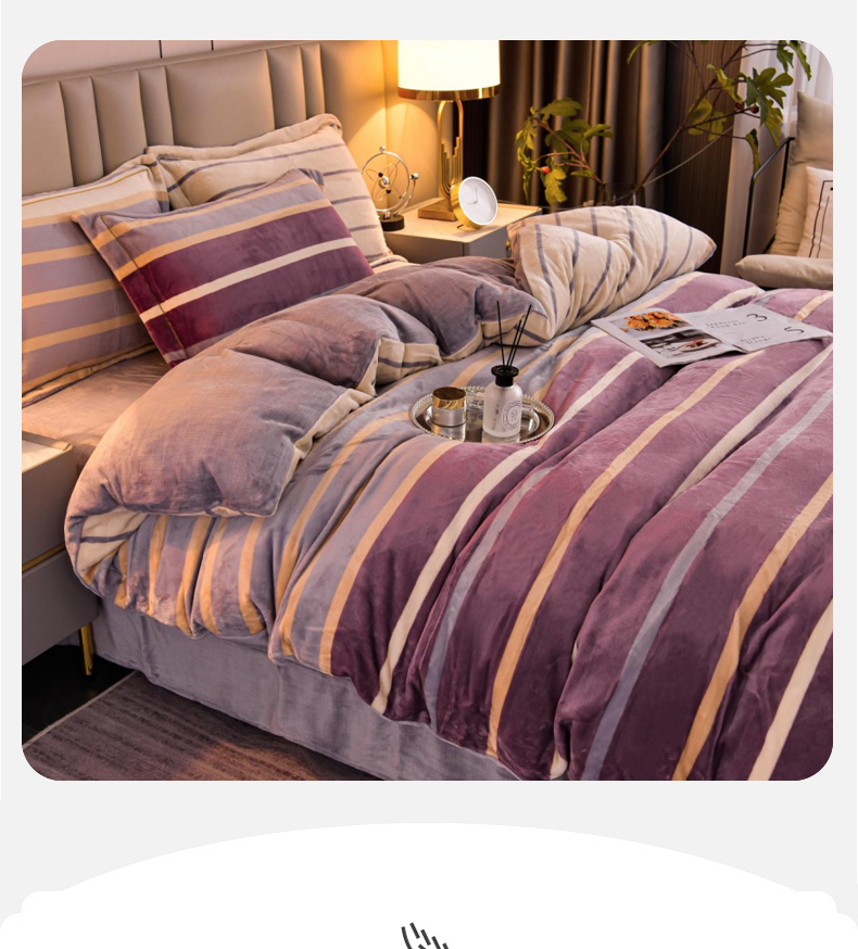 商品名称:丽涵家纺 2025秋冬新品230克全工艺消光牛奶绒印花四件套 绅士条纹-红咖