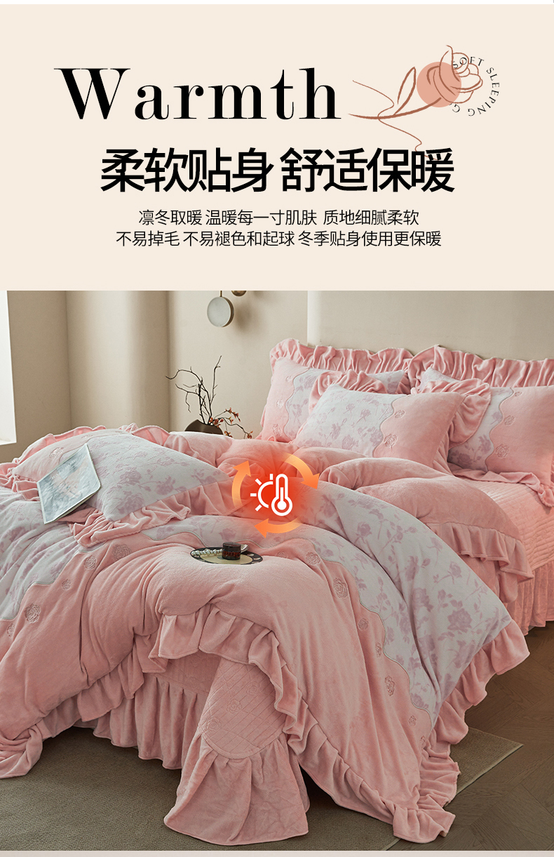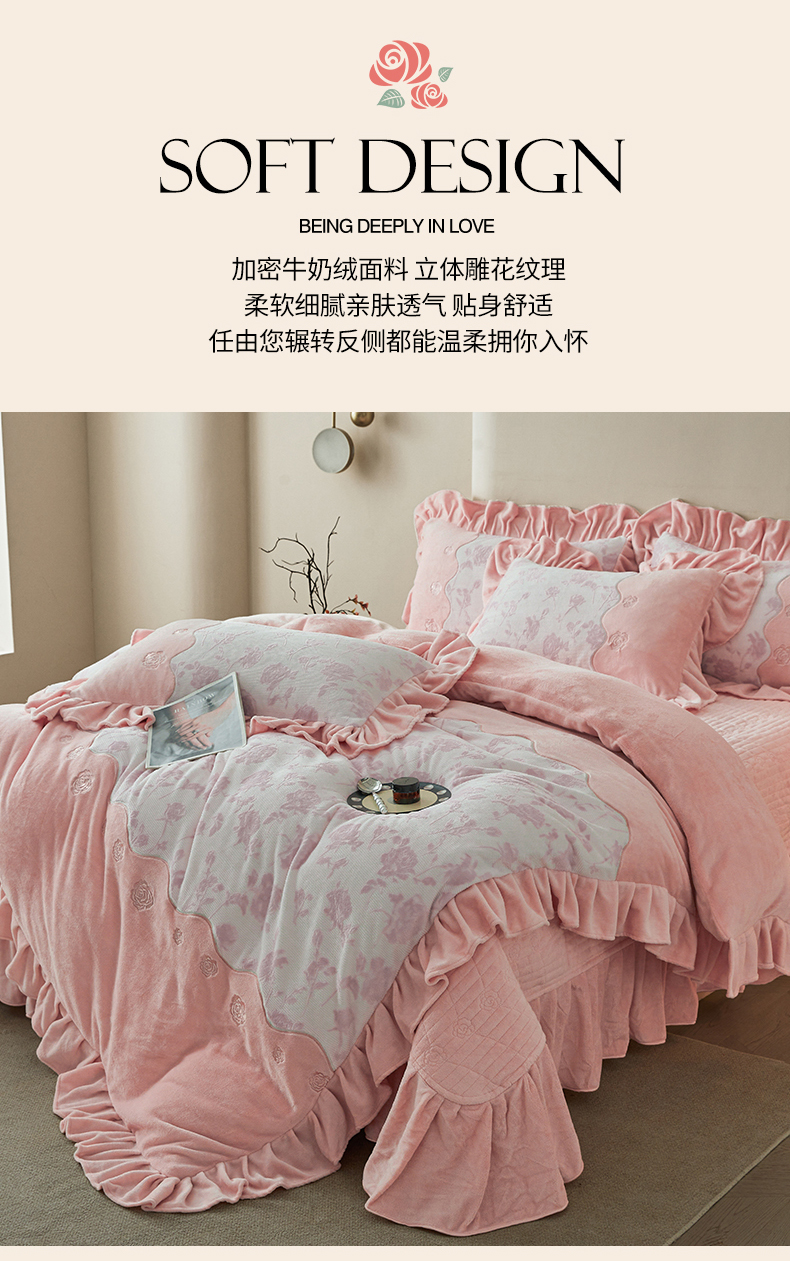 (总)宜凡家纺 2025新款兔绒提花牛奶绒夹棉床裙四件套,爱心 少女粉,爱心 粉紫,爱心 驼色,蝶舞 大红,蝶舞 米色,蝶舞 浅紫,蝶舞 玉色,简爱 苍青,简爱 豆沙紫,简爱 玉色,樱桃 苍青,樱桃 豆沙紫,樱桃 奶油白