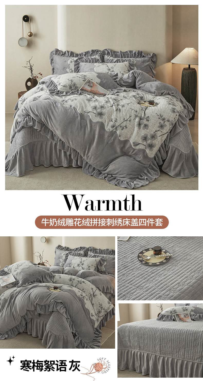 (总)宜凡家纺 2025新款兔绒提花牛奶绒夹棉床盖四件套,爱心 粉紫,爱心 少女粉,爱心 驼色,蝶舞 大红,蝶舞 米色,蝶舞 浅紫,蝶舞 玉色,简爱 苍青,简爱 豆沙紫,简爱 玉色,樱桃 苍青,樱桃 豆沙紫,樱桃 奶油白