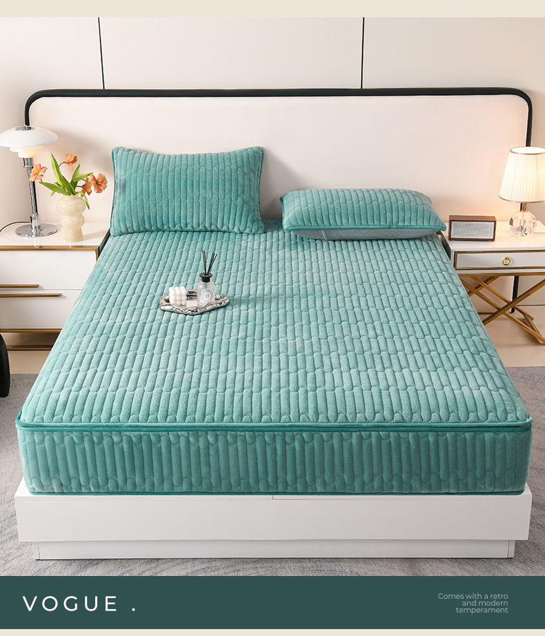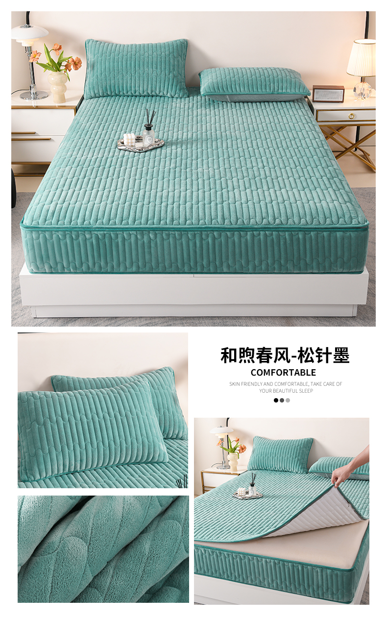 (总)云木里 2025新款速暖豆豆绒夹棉床笠,黑白,卡其,抹茶绿,浅灰,雾霾蓝,樱花粉