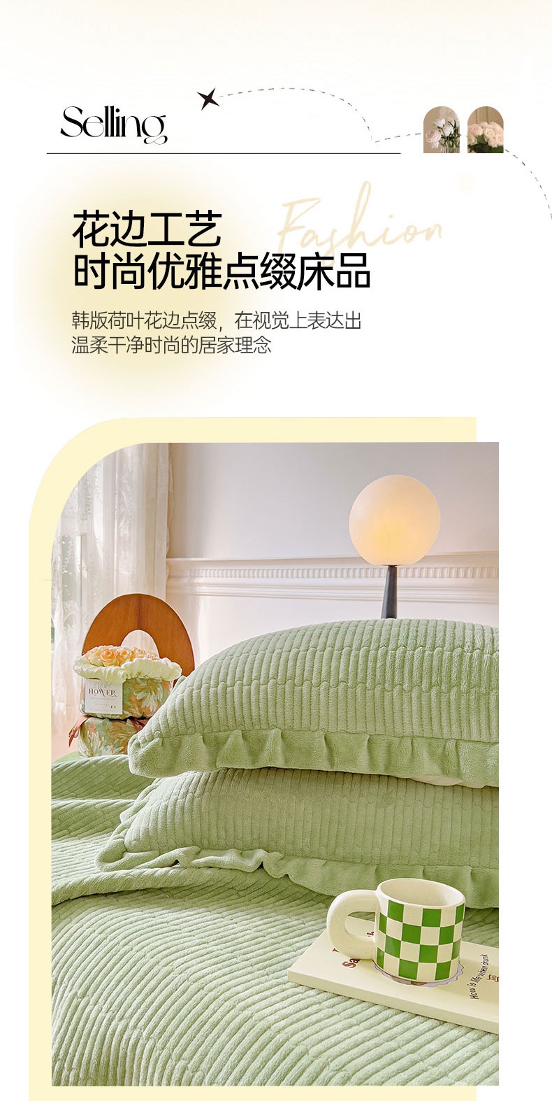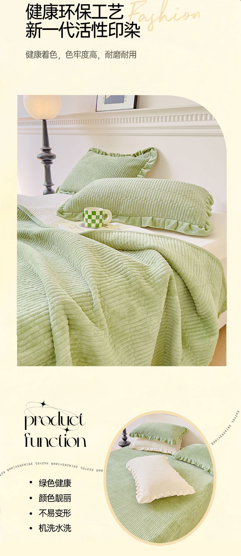 乐野家居 2025新款A类加厚素色牛奶绒床盖系列 森林绿