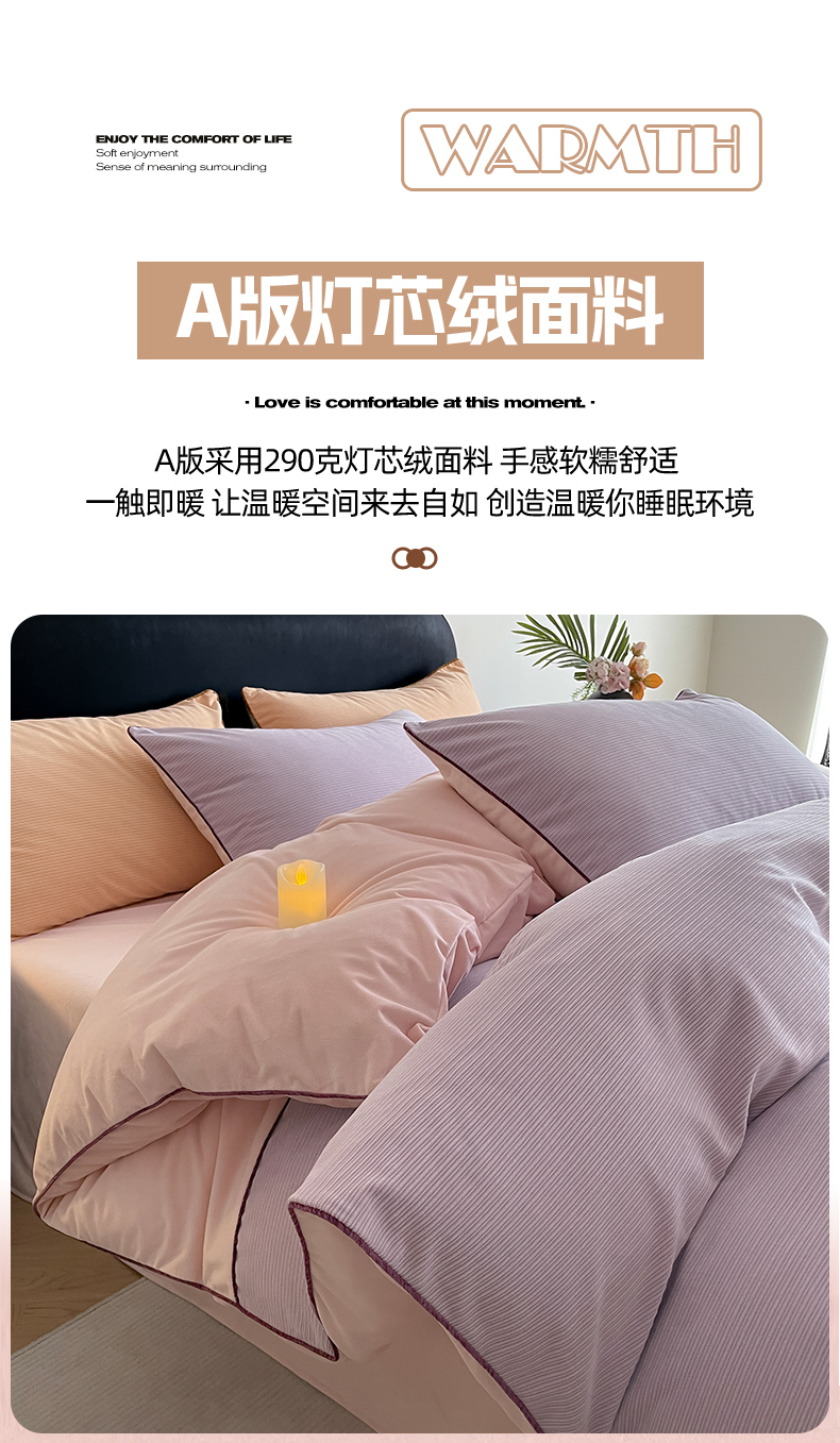 (总)羚羊语家纺 2025新款280克灯芯绒婴儿绒四件套高级嵌绳拼接款水晶绒宝宝绒牛奶绒床单床笠款三件套-奶芙绒系列,紫粉泡泡,雪桃甜吻,浅杏暖阳,椰香茉语,海风佛雾,浮光沁橙,微醺午后,半糖绿洲,复古画报,榛果奶茶